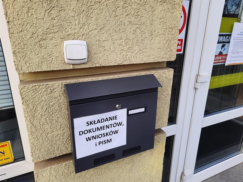 Nadal można zostawiać korespondencję w skrzynce podawczej - przed wejściem do sali obsługi.