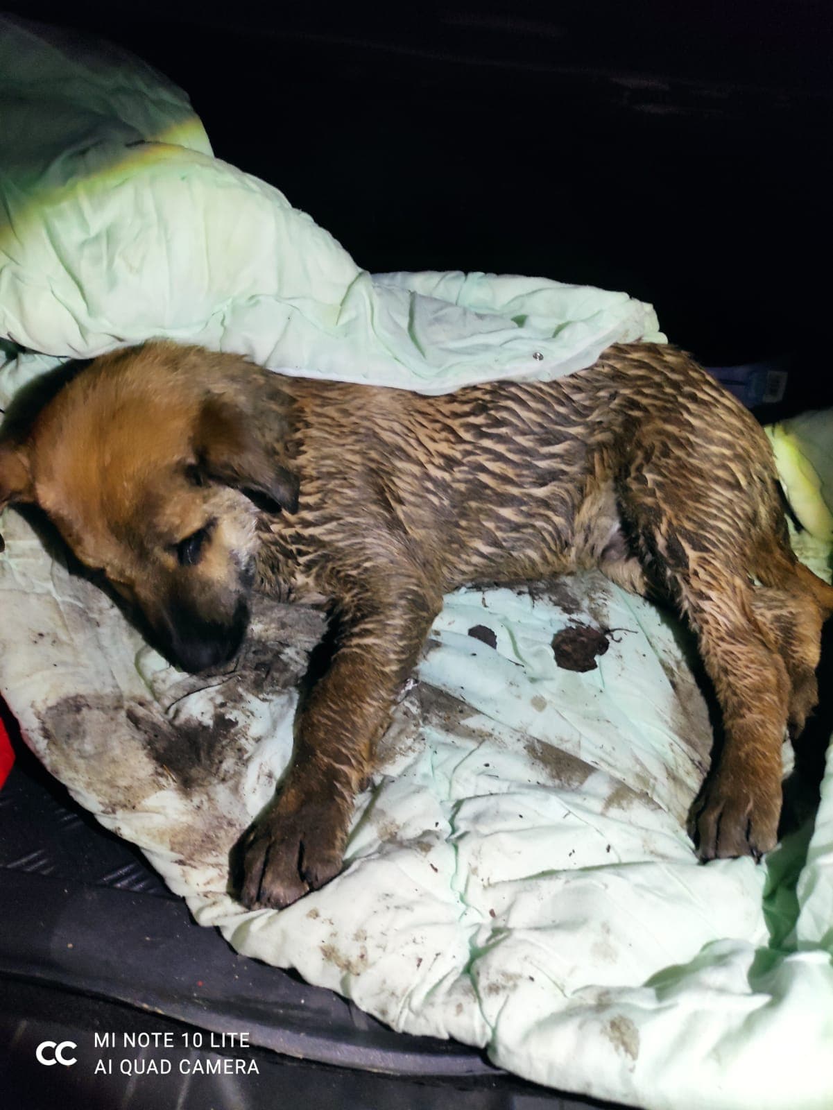Policjanci z Kołobrzegu ruszyli na pomoc młodemu pieskowi, który konał w przydrożnym rowie. Noc była zimna, a zwierzak (możliwe, że po potrąceniu) leżał w błocie.