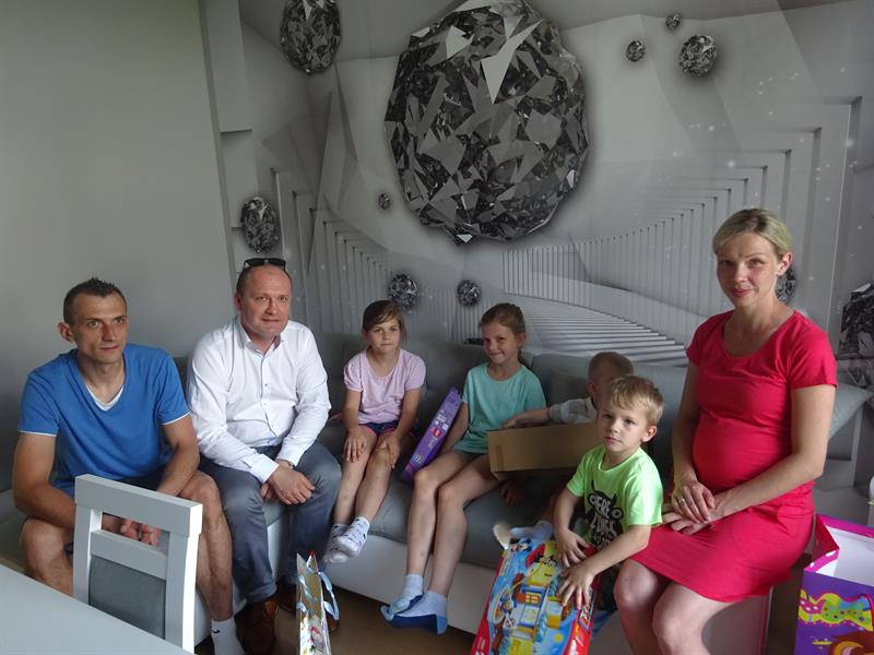 Rodzinę odwiedzili Piotr Krzystek i Grażyna Szotkowska, prezeska Towarzystwa Budownictwa Społecznego Szczecin. Wręczyli maluchom prezenty z okazji ich święta. Dzieci nie ukrywały zadowolenia i od razu zabrały się za oglądanie niespodzianek.