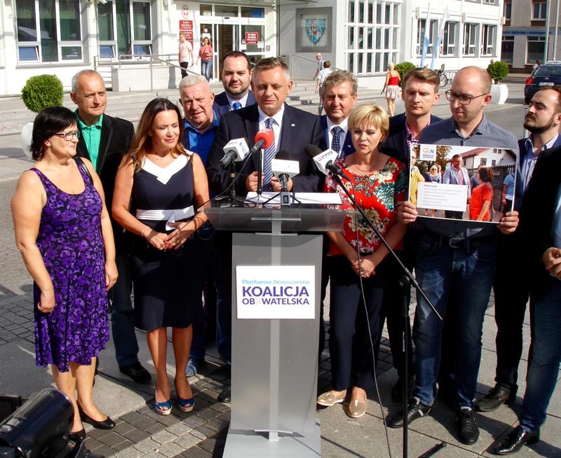 Na zdjęciu: Bliżej ludzi, a ludzie blisko miasta – tak chce tworzyć wspólnotę mieszkańców w nowej kadencji samorządowej ubiegający się o reelekcję prezydent Piotr Jedliński razem z kandydatami Koalicji Obywatelskiej.