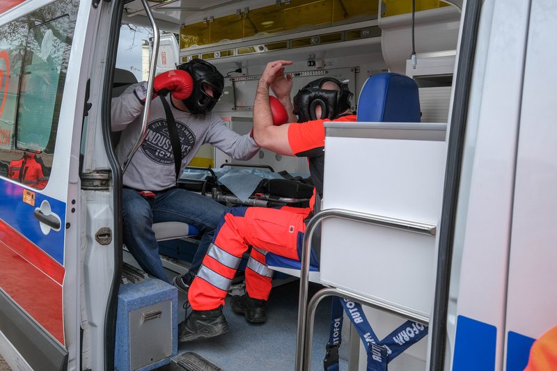 Problem w tym, że czasami trudno jest znaleźć bezpieczne schronienie. Ratownicy zaatakowani przez pijanych kolegów chorego (nie mało jest też osób pod wpływem różnych środków odurzających oraz z zaburzeniami psychicznymi) powinni się więc ukryć w ambulansie. Ale i tu pacjent potrafi uderzyć.