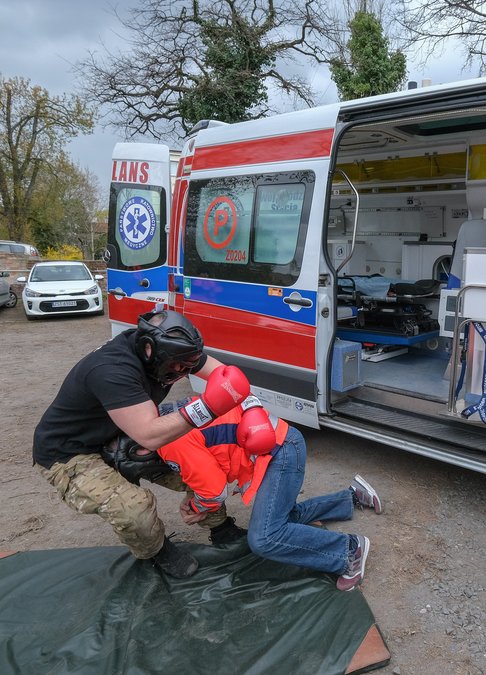 - Uczymy więc zachowań w małych pomieszczeniach - twierdzi Michał Kurdziel. - Dlatego nasz pokaz zorganizowaliśmy w karetkach.