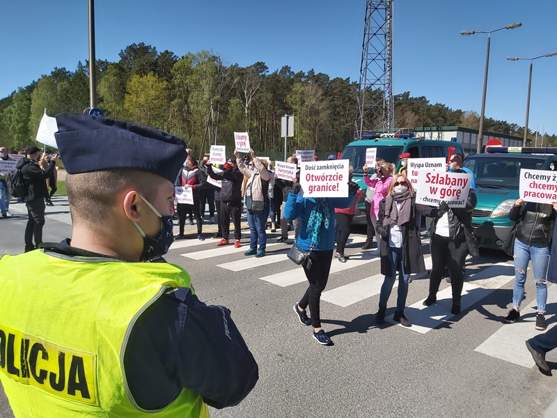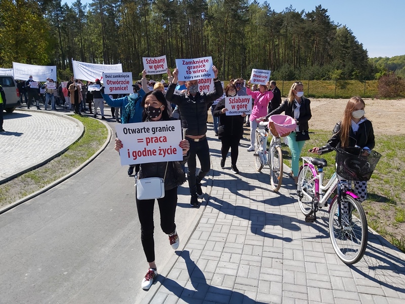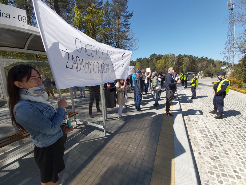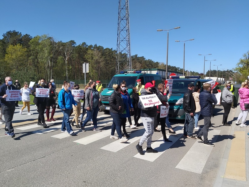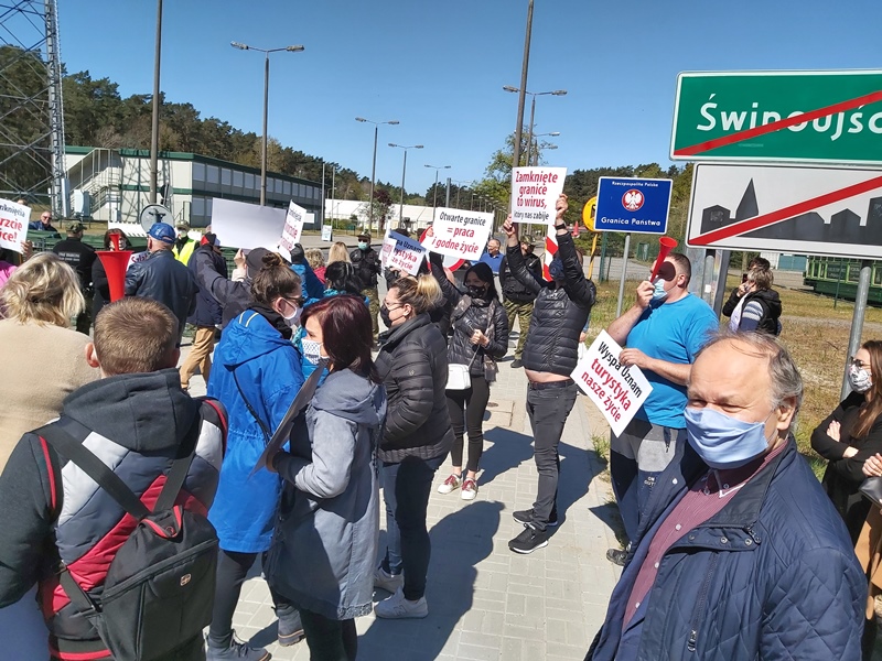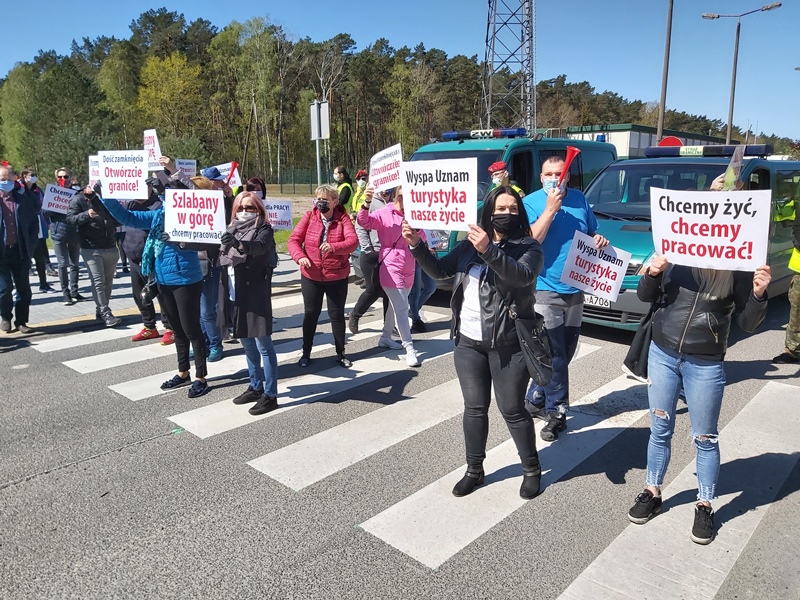 "Szlaban w górę, chcemy pracować!", "Zamknięte granice to wirus, który nas zabije", "Tak dla pracy, nie dla jałmużny", "Chcemy żyć, chcemy pracować!" - te i wiele innych transparentów przynieśli w piątek (8 maja) pod przejście graniczne Świnoujście-Ahlbeck przedsiębiorcy, pracownicy hoteli, handlarze. Kilkaset osób domagało się otwarcia międzynarodowego ruchu. Stosowny apel został już przez świnoujskich przedsiębiorców skierowany do premiera RP Mateusza Morawieckiego.