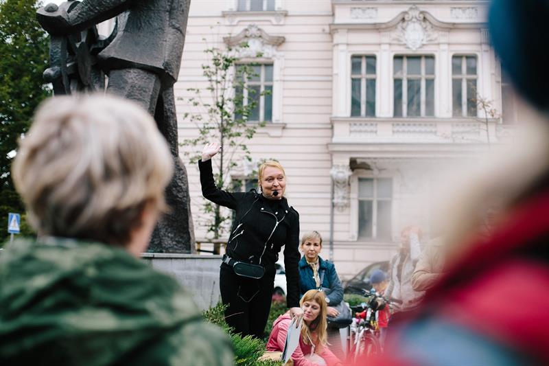Na język ukraiński spacer tłumaczyć będzie Grażyna Iłowiecka – z pochodzenia lwowianka, absolwentka filologii polskiej ze specjalizacją animacja kultury na Uniwersytecie Warszawskim. Fotografka, koordynatorka i kuratorka wielu projektów o charakterze animacyjnym i prospołecznym.