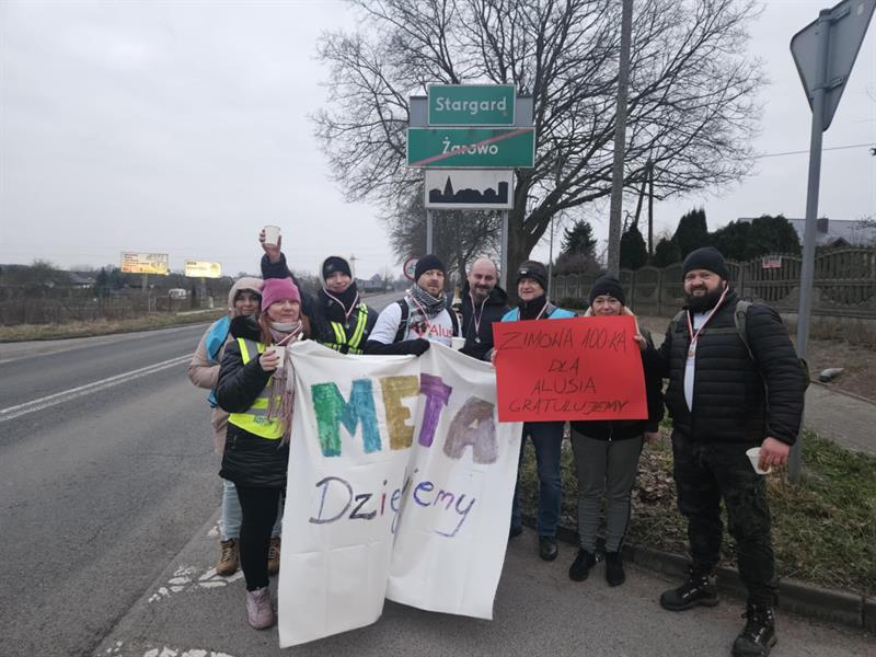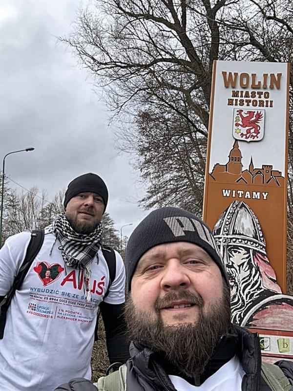 Karol Bednarek i Maciej Mielniczek już raz pokonali na piechotę trasę z Międzyzdrojów do Stargardu. Było to 5 lat temu, w lipcu. Teraz postanowili wyczyn powtórzyć, ale przy zgoła odmiennych warunkach atmosferycznych. W piątek, 7 lutego, wyruszyli z Międzyzdrojów, gdzie zaczęli „Setkę dla Alusia”.