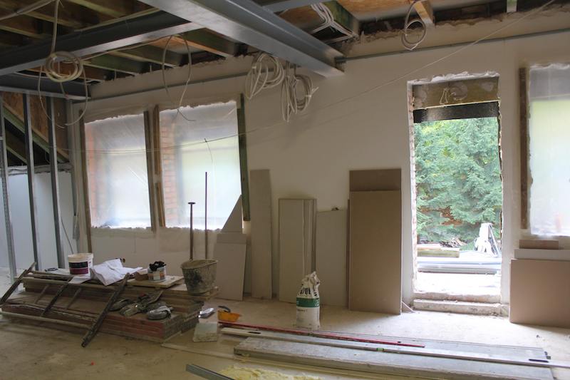 – Wykonawca zakończył już prace związane z wykonaniem więźby i pokrycia dachowego oraz obróbką i montażem rynien, a także montaż stolarki okiennej w budynku głównym. Trwa szpachlowanie otynkowanych ścian na parterze. Wykonano też konstrukcje części ścian działowych – informuje Paulina Łątka ze Centrum Informacji Miasta. – Równolegle do robót budowlanych prowadzonych w budynku głównym, realizowane są prace związane z zagospodarowaniem terenu. Zakończono budowę ogrodzenia od strony bramy gospodarczej, trwają prace nad budową więźby dachowej na wiacie, tzw. zielonej szkoły. W budynku podziemnym wymurowano kominy wentylacyjne.