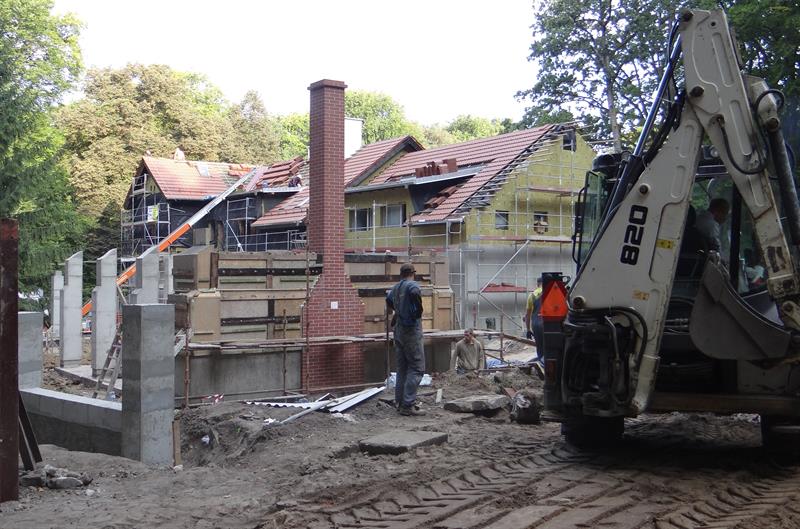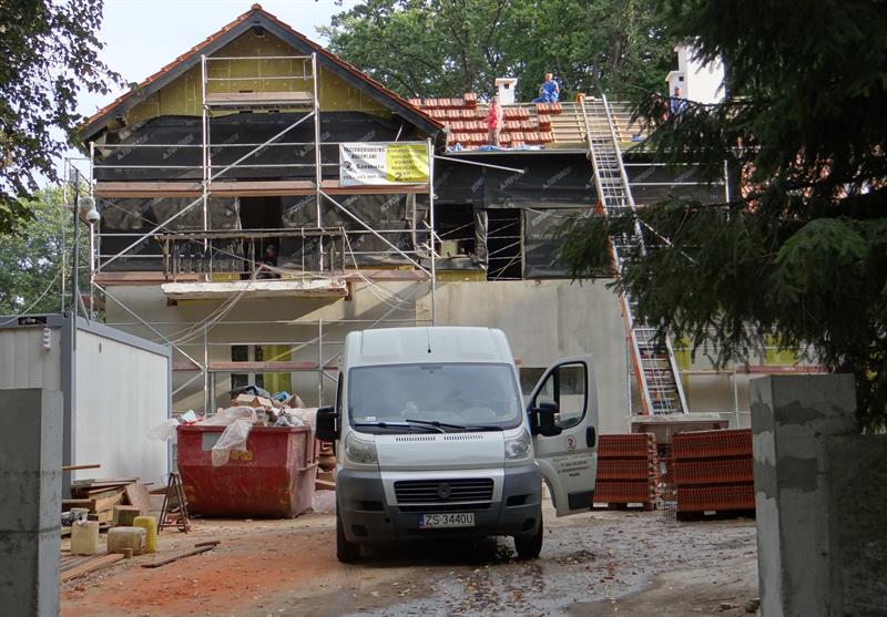 Na zdjęciu: Trwa przebudowa dawnego zajazdu przy ul. Kopalnianej w nowoczesne Centrum Edukacji Ekologicznej - Szkolne Schronisko Młodzieżowe „Szmaragdowe - Zdroje”.