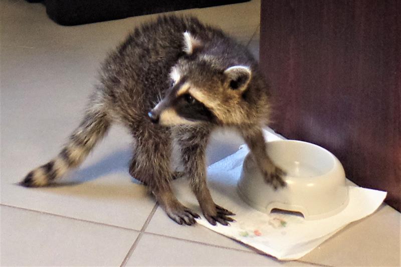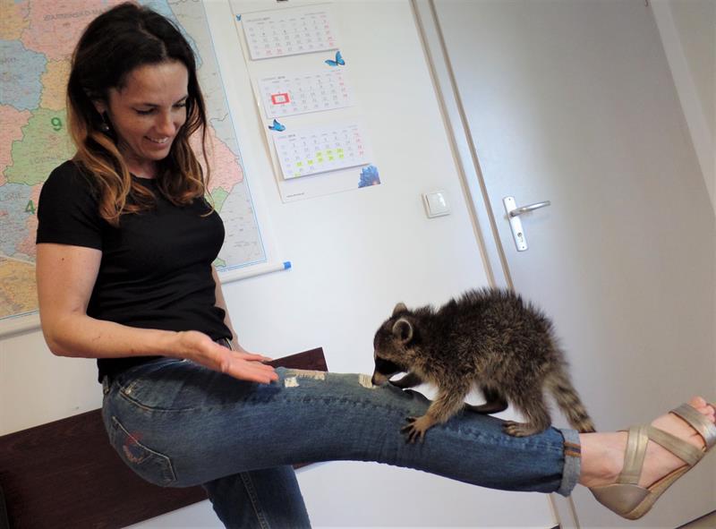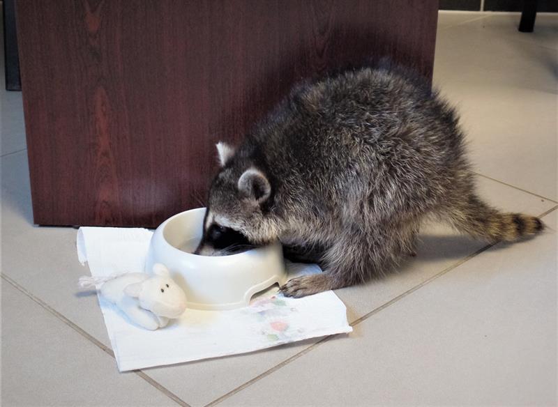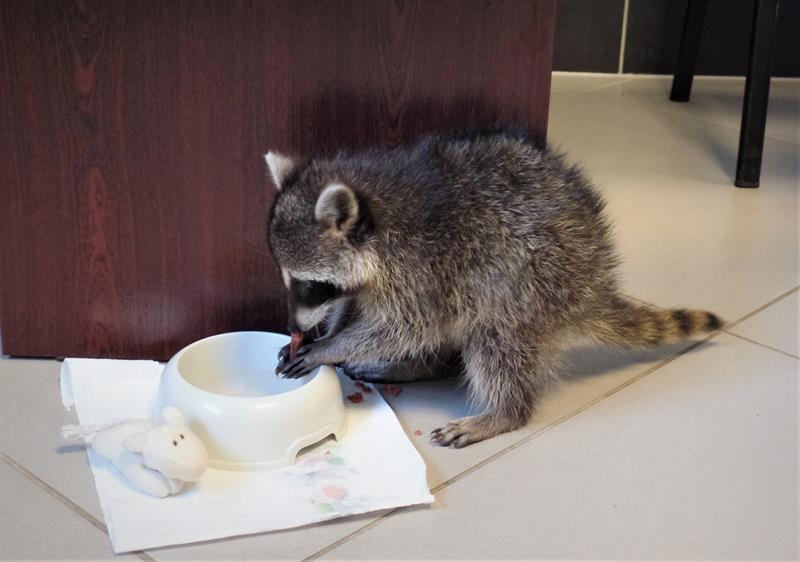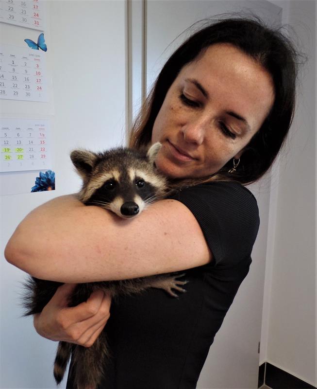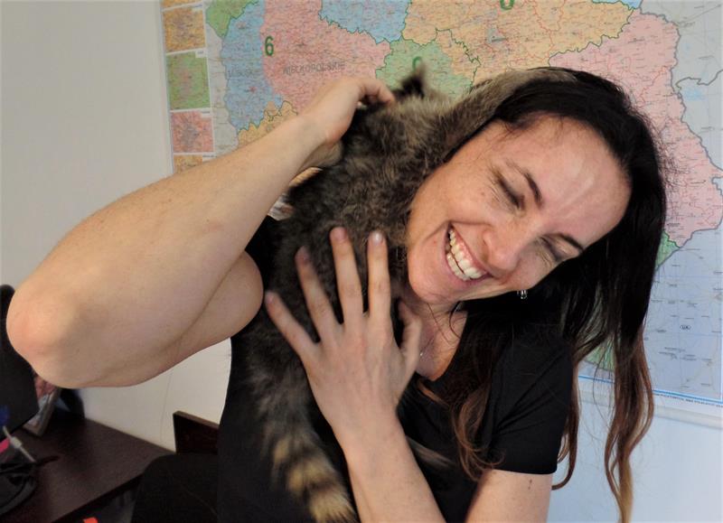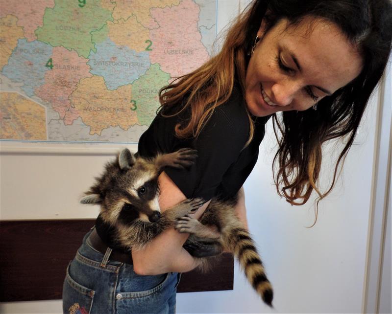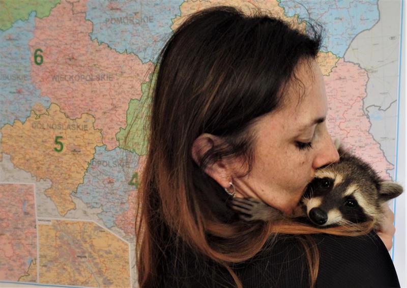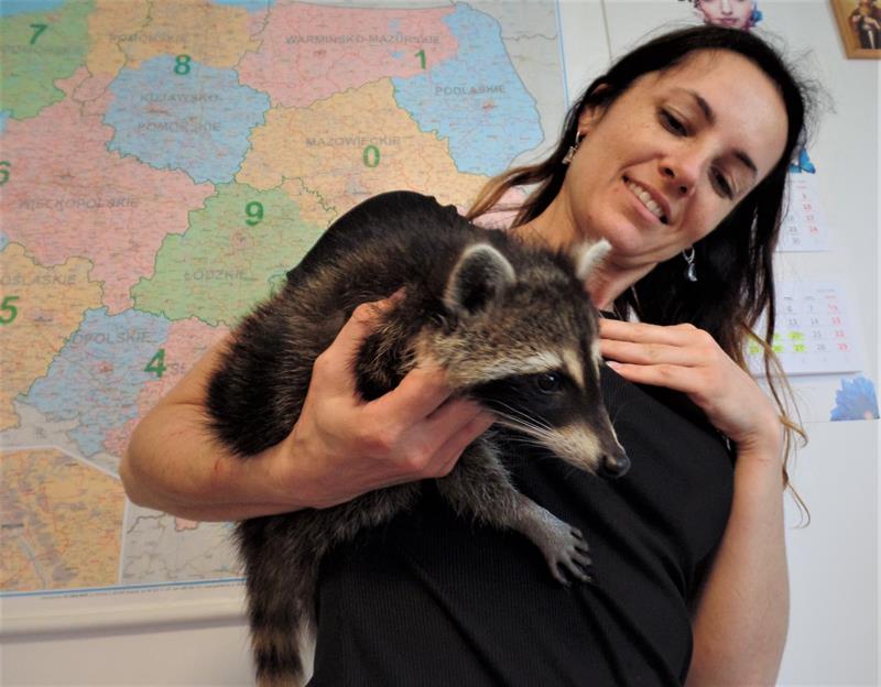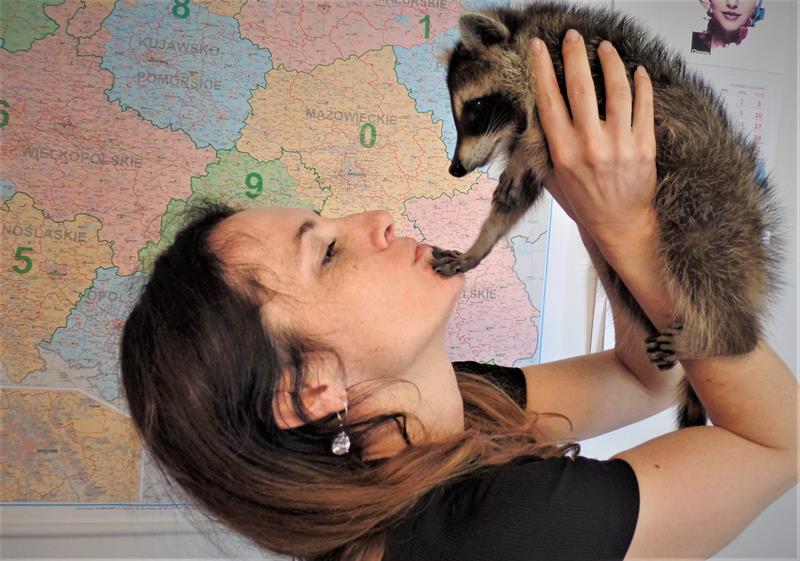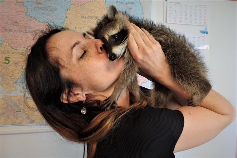 Na zdjęciach: Marzena Białowolska i jej wychowanek, czyli 8-tygodniowy szop pracz Rocket.