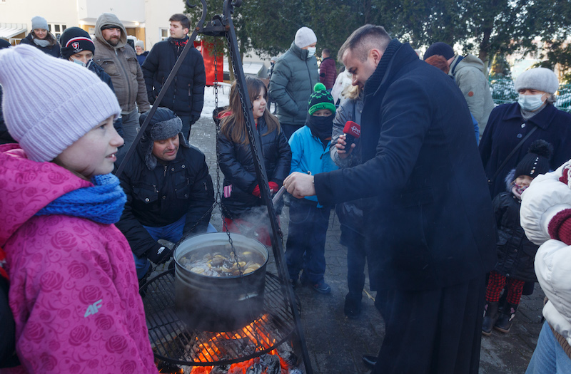 W tej scenerii przy ognisku rozbrzmiały w sobotnie popołudnie kolędy w wykonaniu chóru dziecięcego, a w niedzielę w "Szczecińskim Betlejem" - jak w tym roku nazwano to miejsce - wystąpi chór parafialny.