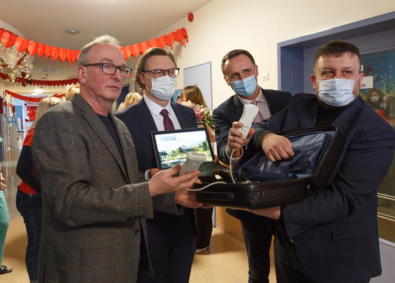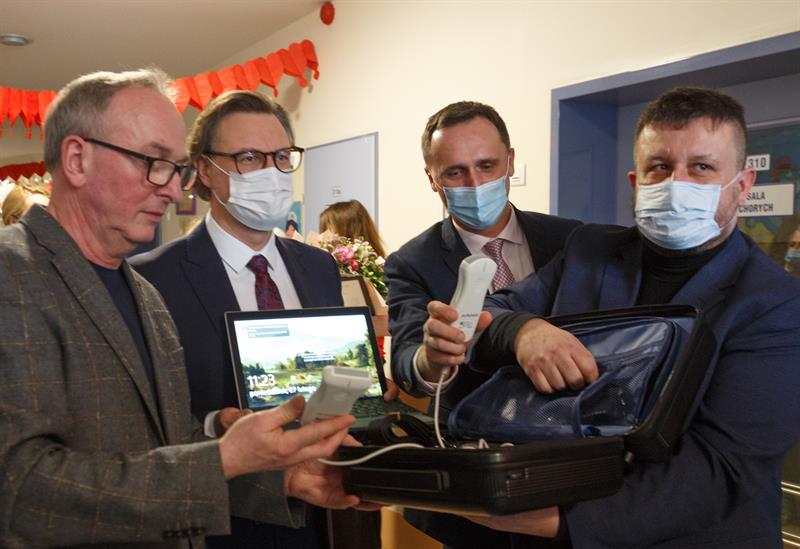 - Jest to dla nas ważna rzecz, bo ułatwi nam pracę w oddziale - mówił kierownik kliniki prof. dr hab. n. med. Jarosław Peregud-Pogorzelski. - Bywają takie sytuacje, że musimy na szybko ustalić czy np. gromadzi się płyn w jamie brzusznej, czy gromadzi się płyn w opłucnej, obejrzeć czy są jakieś zmiany w płucach, trzeba ocenić węzły chłonne... Ten aparat będzie właśnie do szybkiej, wstępnej oceny tego typu zmian w tych narządach. Dziękuję w imieniu własnym, personelu kliniki, moich współpracowników.