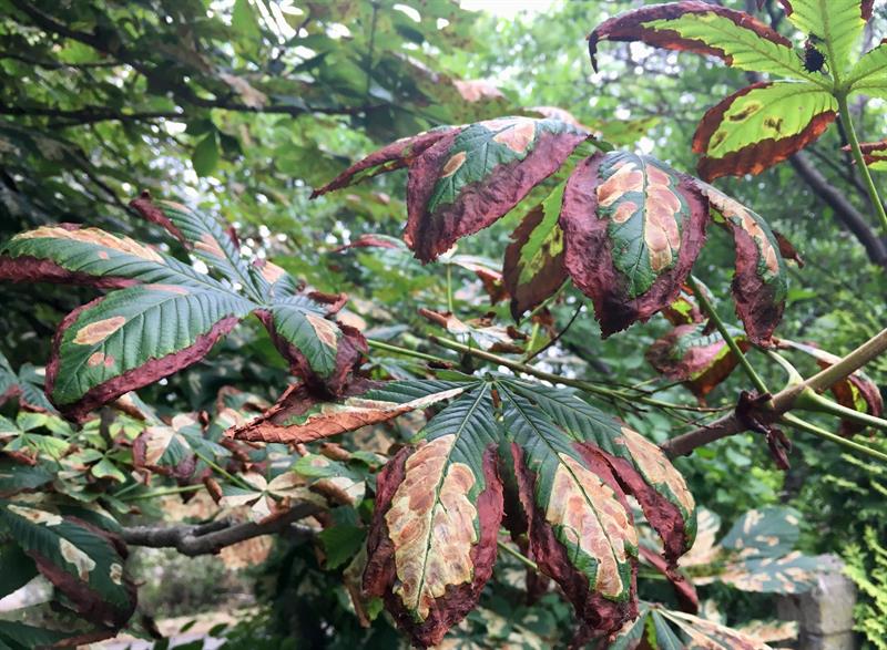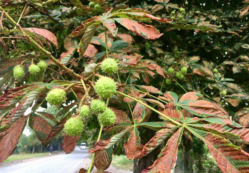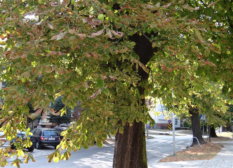Na zdjęciu: Kasztanowce zaatakowane przez szkodnika. Szrotówek, czyli zjadliwy owad, zbiera żniwo.