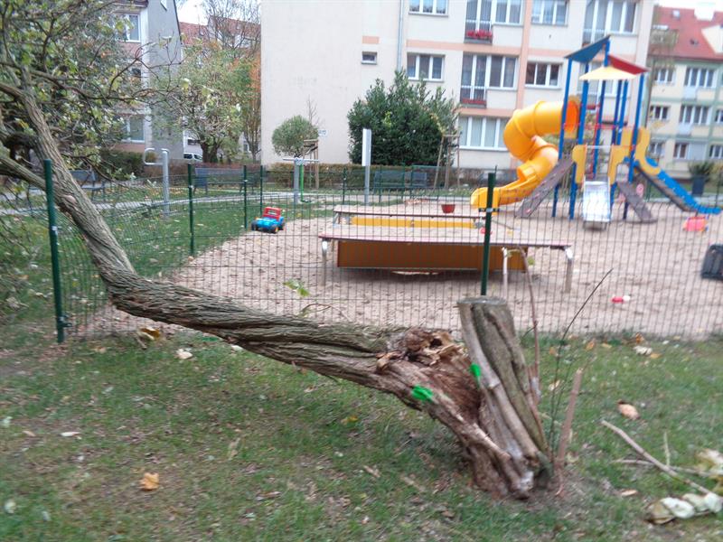 - Szczęście w nieszczęściu, że spadło na ogrodzenie placu zabaw. Podwójne, bo do zdarzenia doszło po zmroku, gdy na ogródku jordanowskim już nie było ani dzieci, ani ich opiekunów, a opodal nikt nie przechodził - mówi Lucyna Wójcik. - Co nie zmienia faktu, że przez powolność trybów biurokratycznej machiny i zlekceważenie zagrożenia ktoś mógł poważnie ucierpieć.
