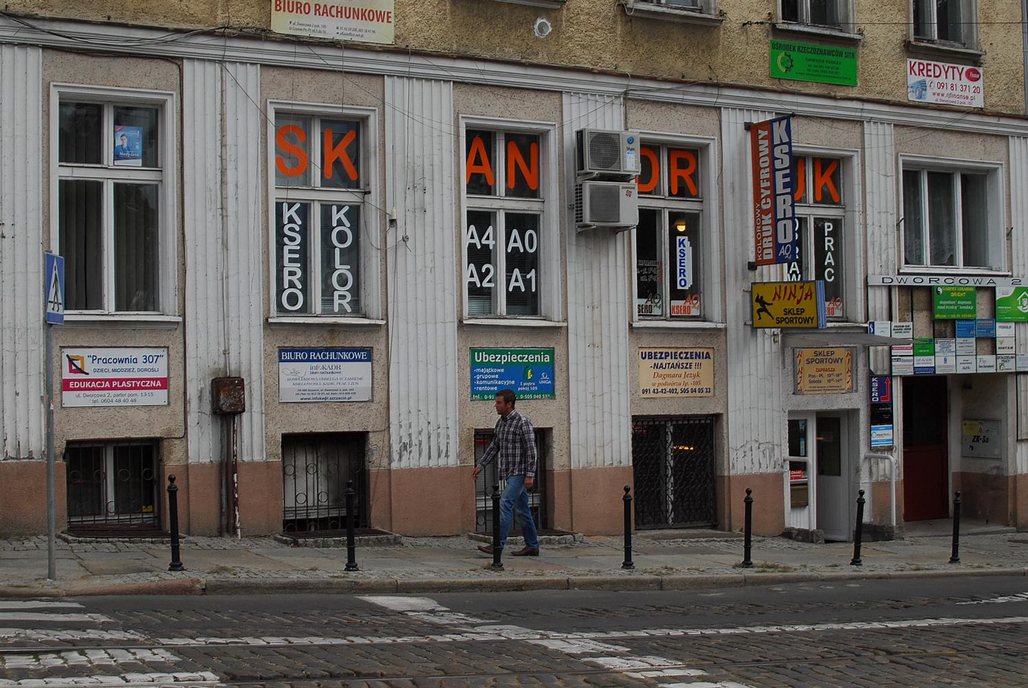 Sytuacja w Szczecinie jest tragiczna. I chodzi nie tylko o budynki i ich ściany frontowe w centrum miasta. Fatalnie jest także na peryferiach, szczególnie gdy chodzi o małą architekturę, czy zwykłe płoty na terenach nie wiadomo do kogo należących.To jakieś przewracające się konstrukcje czy zwykłe skorodowane z biegiem lat siatki, na których lokalni biznesiarze wieszają jakieś ceratowe banerki. Przykładem może być minirondo u zbiegu ulic Szerokiej, Szafera i Modrej (Krzekowo). Gdzie architekt miejski, gdzie straż miejska, która karanie niechlujów ma przecież w obowiązkach?