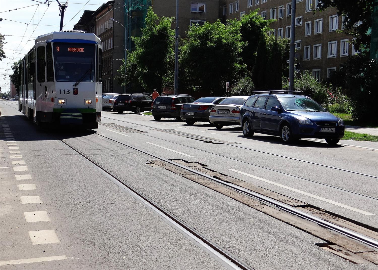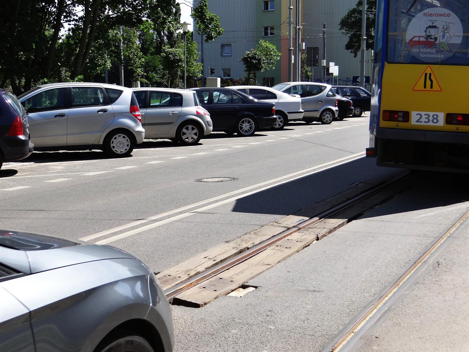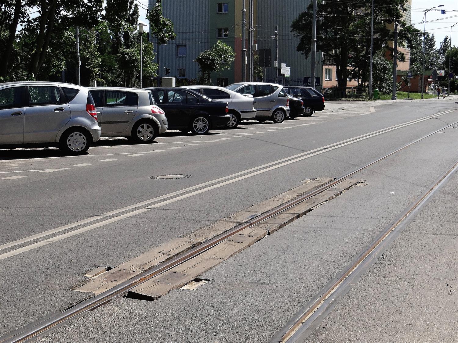 Niedziela, 30 lipca 2017. Pękające nowe szyny torowiska w jezdni ul. Potulickiej.