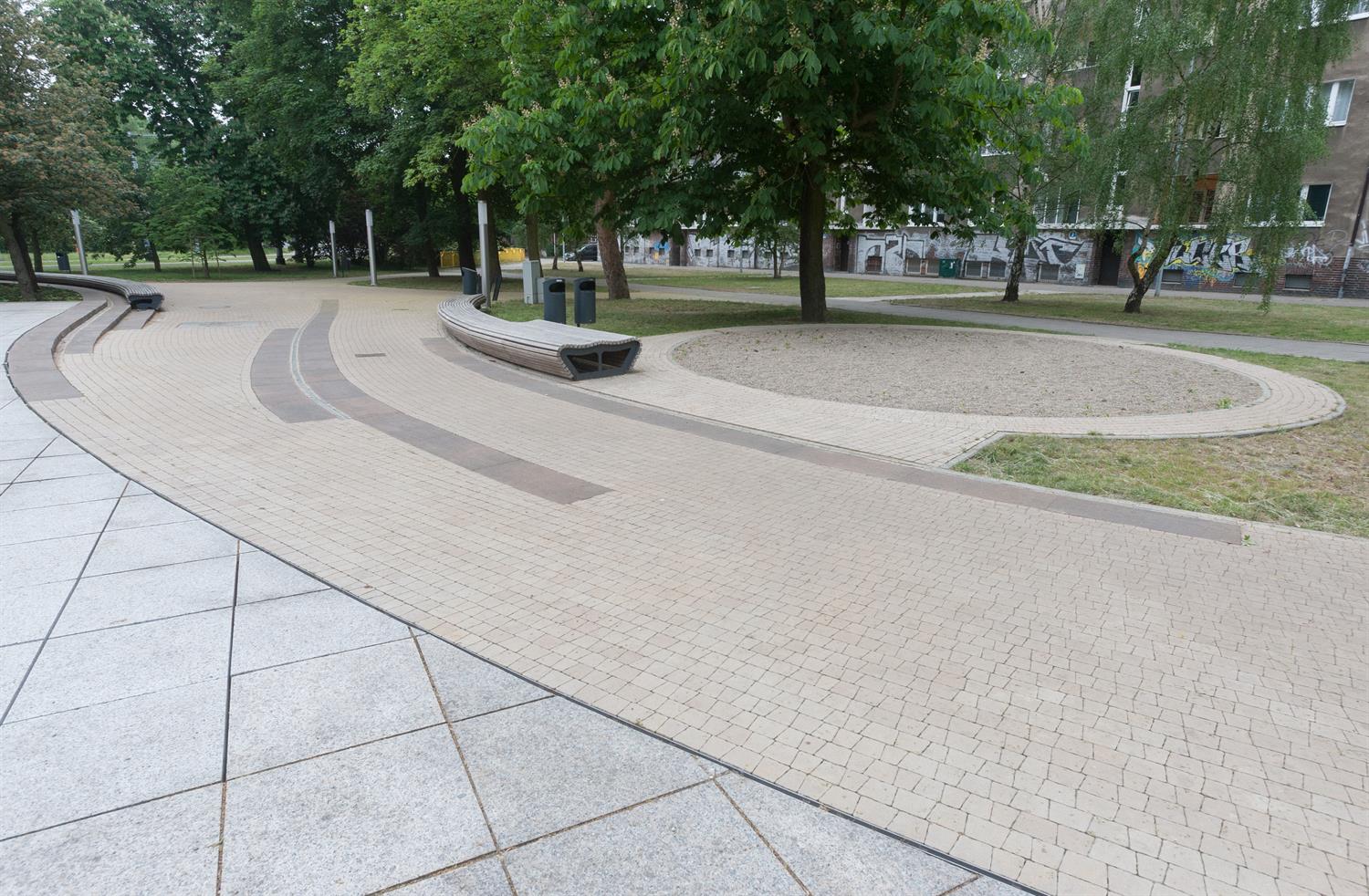 W cenie - czyli w 1,27 mln zł, za jakie miał być przebudowany plac, a dawny basen przeciwpożarowy przemieniony w fontannę - było też jedno tzw. urządzenie zabawowe. Tak przynajmniej stanowiła specyfikacja istotnych warunków zamówienia, czyli podstawa do przeprowadzenia i rozstrzygnięcia procedury przetargowej. Dowodem, specjalnie pod nie wydzielony i urządzony w przestrzeni placu okrąg - mini ogródek jordanowski. Piasek w nim jest. „Zabawki" brak.