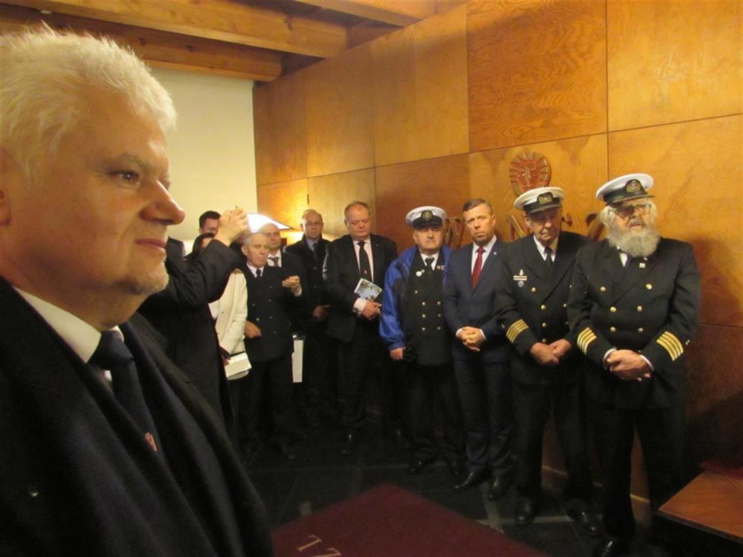 Wzruszające przemówienie wygłosił kpt. żw. Zbigniew Sulatycki, przewodniczący Honorowego Komitetu Obchodów 100-lecia Żeglugi Polskiej oraz przewodniczący Konwentu Morskiego.