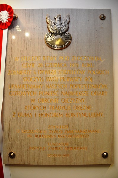 Z okazji setnej rocznicy bitwy pod Złoczowem w dowództwie 12 Szczecińskiej Dywizji Zmechanizowanej im. Bolesława Krzywoustego odsłonięta została tablica pamiątkowa.