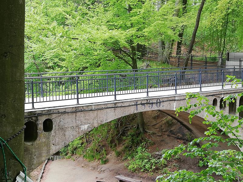 Wystarczyło fragmentaryczne czyszczenie fasady mostku przy Jeziorze Szmaragdowym, aby odkryć dwie tajemnice. Pierwsza to datowanie zabytkowej konstrukcji. Drugą jest brak należytego nadzoru nad zabytkiem, co doprowadziło do jego dewastacji: kablem energetycznym ordynarnie przebito nawet oryginalny „1890".