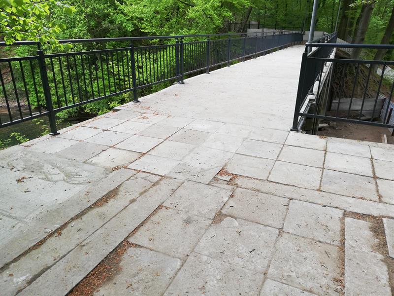 To jego pierwszy etap remontu właśnie się zakończył. W dość kiepskim stylu. W miniony weekend mostek został udostępniony pieszym, bo wymieniono jego barierkę i nakładkę nawierzchni. O ile ta pierwsza stanowi solidne zabezpieczenie, o tyle nowa wylewka jest nierówna, a od strony jednego z przęseł - na wysokości dawnego zajazdu „Szmaragd" - prowadzi doń patchwork płytek, od którego mógłby się zaczynać kolejny szczeciński „marsz przeciwko nierównym chodnikom".