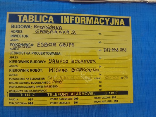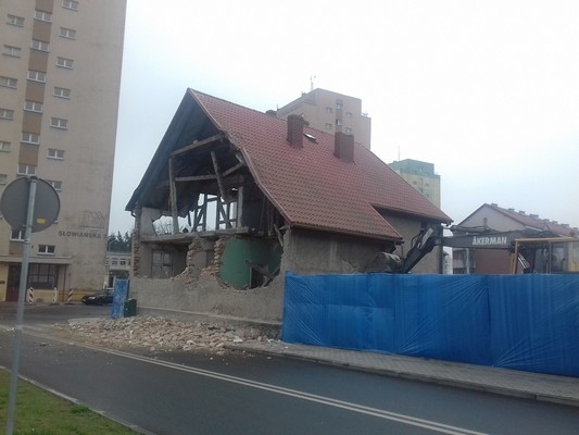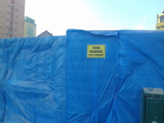 Zwykło się mówić, że „rozbiórka jest ostatnim momentem życia budynku”. Zgodnie z prawem traktowana jest jako rodzaj robót budowlanych. Jednym z elementów obowiązujących podczas rozbiórki obiektu jest umieszczenie w widocznym miejscu tablicy informacyjnej. Obok określenia rodzaju robót budowlanych tablica taka zawiera m.in. dane inwestora, wykonawcy robót budowlanych i kierownika budowy. Powinna być umieszczona w miejscu widocznym od strony drogi publicznej lub dojazdu do takiej drogi, na wysokości umożliwiającej jej odczytanie. W poniedziałek (16 kwietnia) rozpoczęto rozbiórkę obiektu, ale tablicy informacyjnej nigdzie nie było. Żaden z obecnych po południu na placu budowy pracowników nie umiał tego wytłumaczyć, a prośbę o podanie kontaktu do kierownika budowy po prostu zbyto. Rozbiórka pełna tajemnic? O sprawie poinformowany został miejscowy nadzór budowlany.