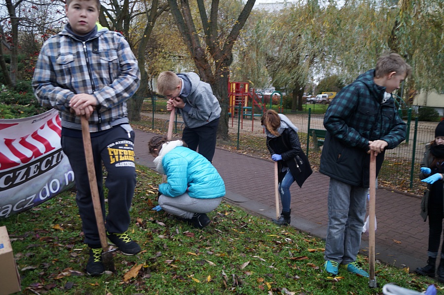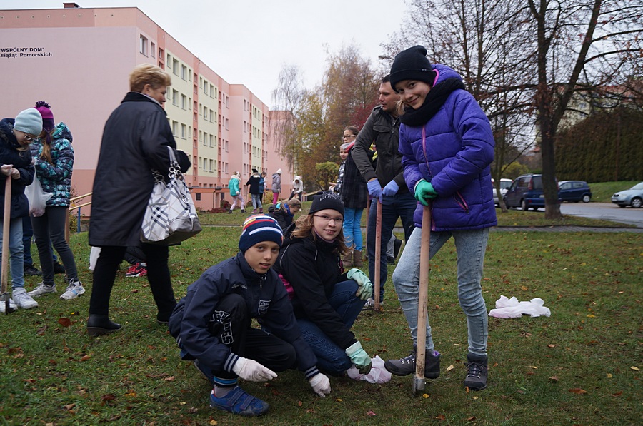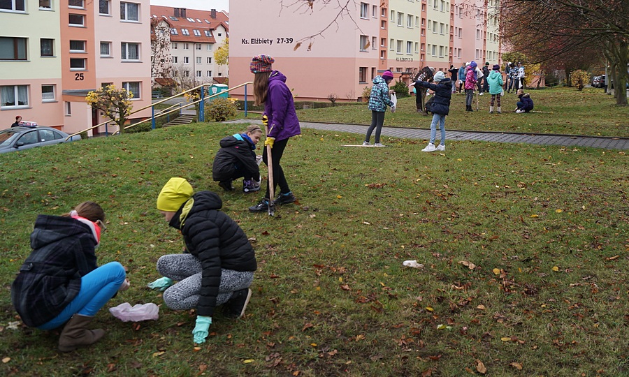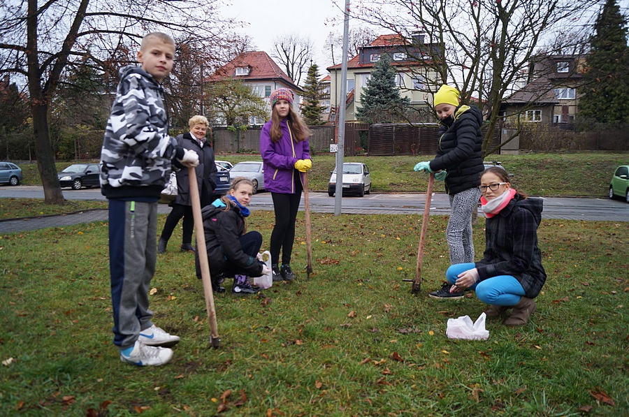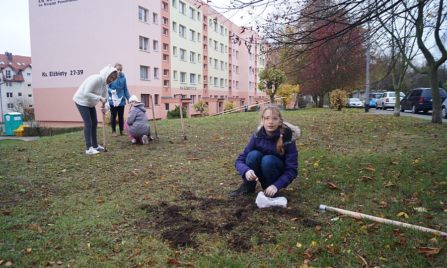 - Dzieci sadziły tuż przed leżakowaniem. Teraz nasza kolej. Pogoda nie sprzyja, ale najważniejsze, że zmieniamy także to bliskie nam miejsce, jak inni w całym Szczecinie, na lepsze - komentowała Grażyna Szymańska, wicedyrektor placówki. – Wszystkich zachwycają rozkwitające Jasne Błonia. W telefonie trzymam ich zdjęcia, by czasem spojrzeć, przypomnieć, „ku pokrzepieniu”. Teraz cieszy, że sami tworzymy taki kwitnący dywan, co będzie nas cieszył kolorami, już na wiosnę. Czekamy na ten efekt!