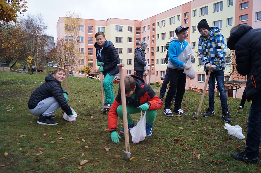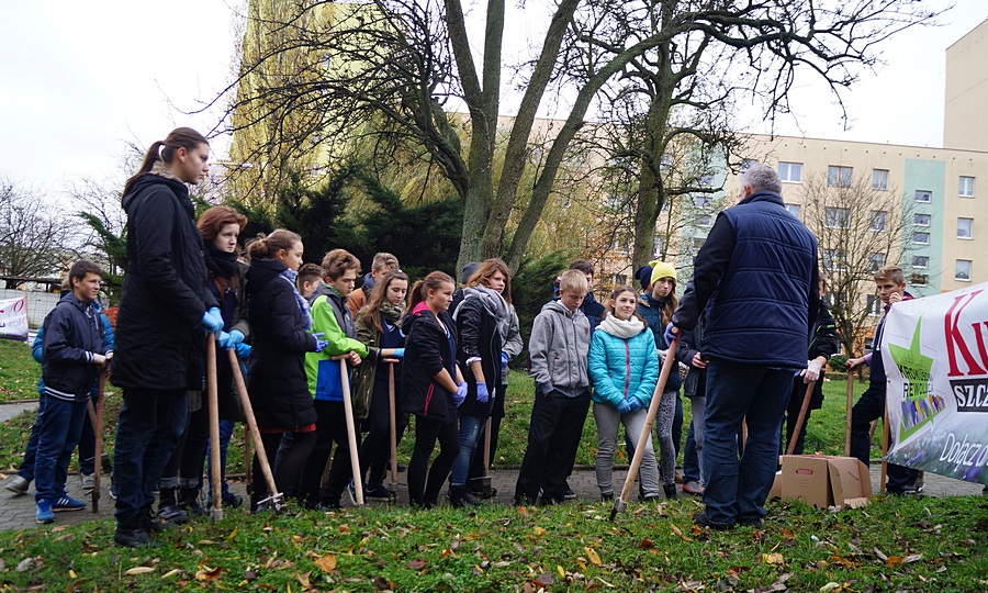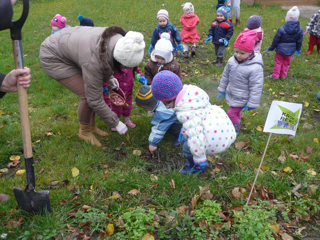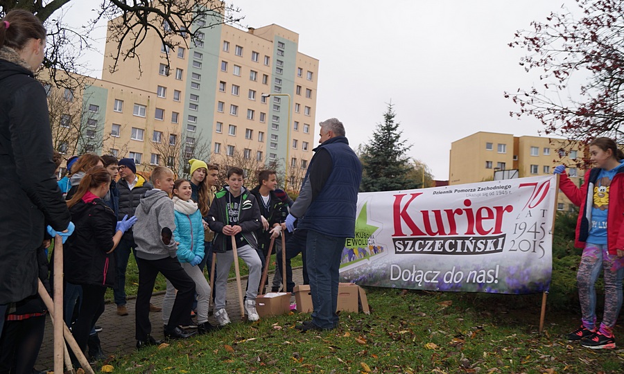 Sprawnie, z zapałem, wykazując się sporą ogrodniczą wiedzą krokusowe pola - na terenie rekreacyjnym w sąsiedztwie ul. Bandurskiego i Przyjaciół Żołnierza - tworzyli również wychowankowie Przemysława Landowskiego , czyli kl. Id Gimnazjum nr 34. Po nich w akcję na rzecz pięknego Szczecina podjęły starszaki z „Muchomorka” (Żłobek nr 6), wsparte przez zacne grono pedagogiczne oraz kilkoro rodziców. Dzięki nim trawnik przy tej placówce, czyli przy ul. Mazowieckiej, wiosną rozkwitnie kolejnym tysiącem krokusów.