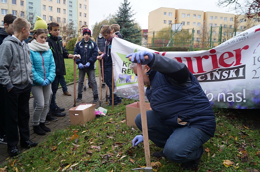 - Dbamy o przyszkolny ogród, stale rozwijamy ścieżkę edukacyjną. Propagujemy zdrowe odżywianie i ekologiczny styl życia. Nasi uczniowie równie chętnie zdobywają naukową wiedzę, co biorą udział w wielu charytatywnych przedsięwzięciach. A teraz – po raz kolejny – znów w „krokusowej rewolucji” – mówiła Dorota Pawełko, która współtworzyła kwiatowe kobierce z uczniami kl. VI b i c SP nr 35 na zieleńcach os. Książąt Pomorskich, przy ul. Ks. Elżbiety. – Do dla nich świetna lekcja przyrody, bo praktyczna i plenerowa. Ale też swoista nauka obywatelska. Skoro sami włożyli sporo wysiłku w sadzenie krokusowych cebul, to od tej pory będą wiedzieli, że kwiaty, krzewy i drzewa na zieleńcach i w parkach też są efektem czyjejś pracy, co trzeba uszanować.