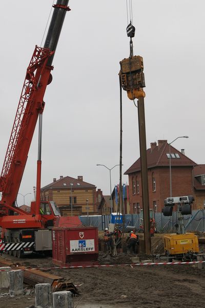 Pracownicy generalnego wykonawcy – firmy ERBUD S.A. niedługo zakończą wbijanie pali. Trwają też prace przy budowie podziemia. Tu, przy pomocy specjalnych urządzeń wbito w grunt stalowe grodzie stanowiące elementy specjalnej ścianki szczelnej, która umożliwi wykonanie betonowego podłoża i ścian podziemnej kondygnacji.