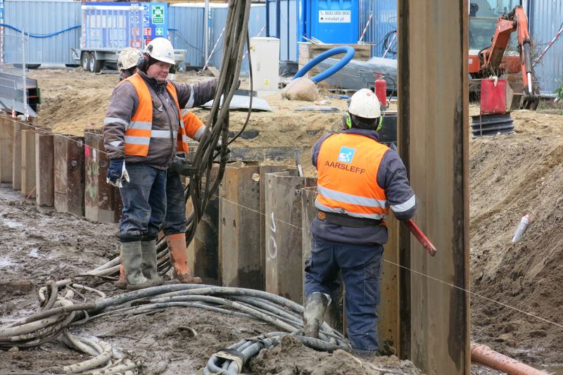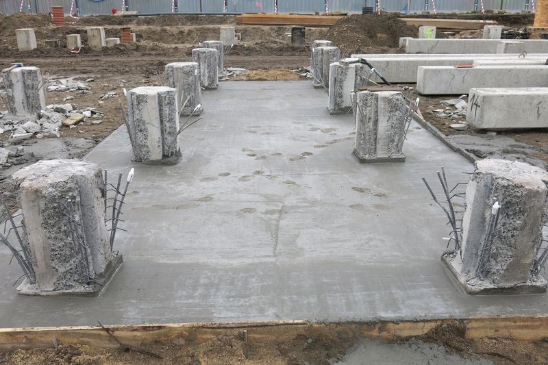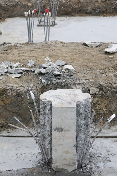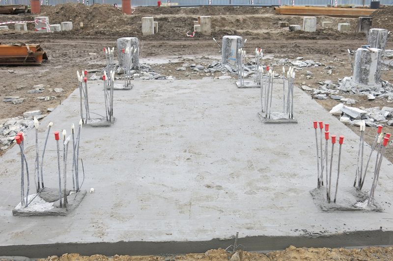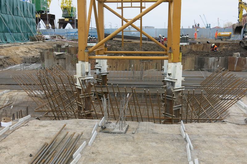 Jeżeli wszystko dobrze pójdzie i budowlańcy nie natrafią na podziemne przeszkody, przejdą do kolejnego etapu budowy. Już widać przygotowania do wykonania płyty fundamentowej polegające na odsłonięciu zbrojenia wbitych w ziemię pali.