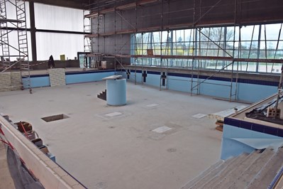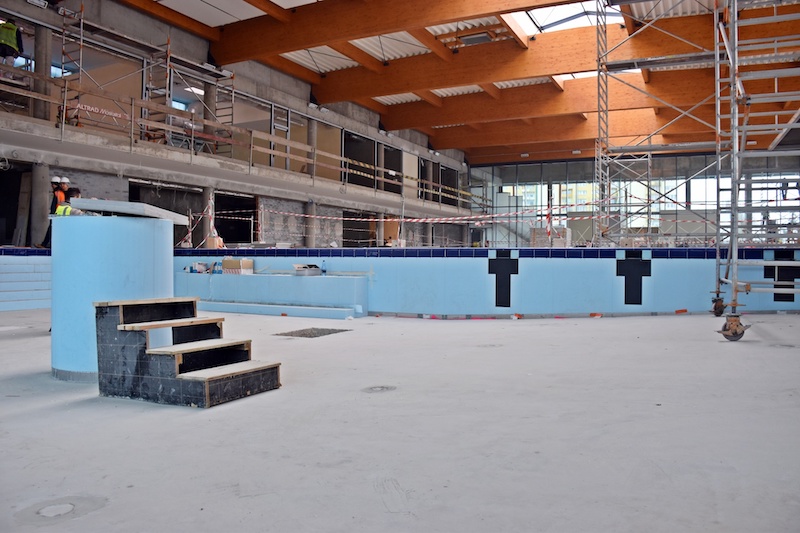 - Obiekt wzbogacił się już o nieckę basenu rekreacyjnego. W najbliższym czasie, na obu nieckach (sportowej i rekreacyjnej) instalowana będzie membrana basenowa. Ponadto prowadzone są prace przy montażu instalacji, trwa układanie płytek i tynków, montowana jest stolarka drzwiowa - mówi Piotr Zieliński, rzecznik prasowy Miasta Szczecin ds. inwestycji.