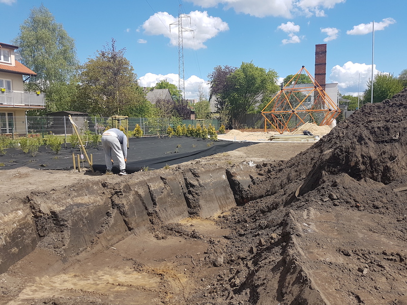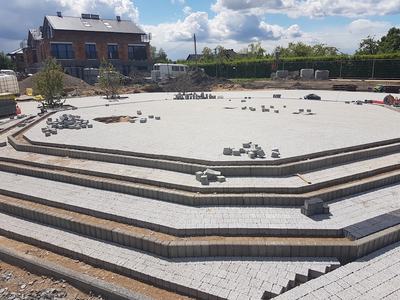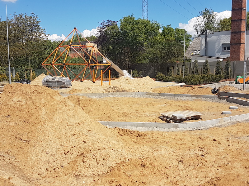 Na skwerze Misia Wojtka trwa układanie nawierzchni placu głównego. W innej części robione są nasadzenia krzewów. Drzewa, w większości, zostały już posadzone.