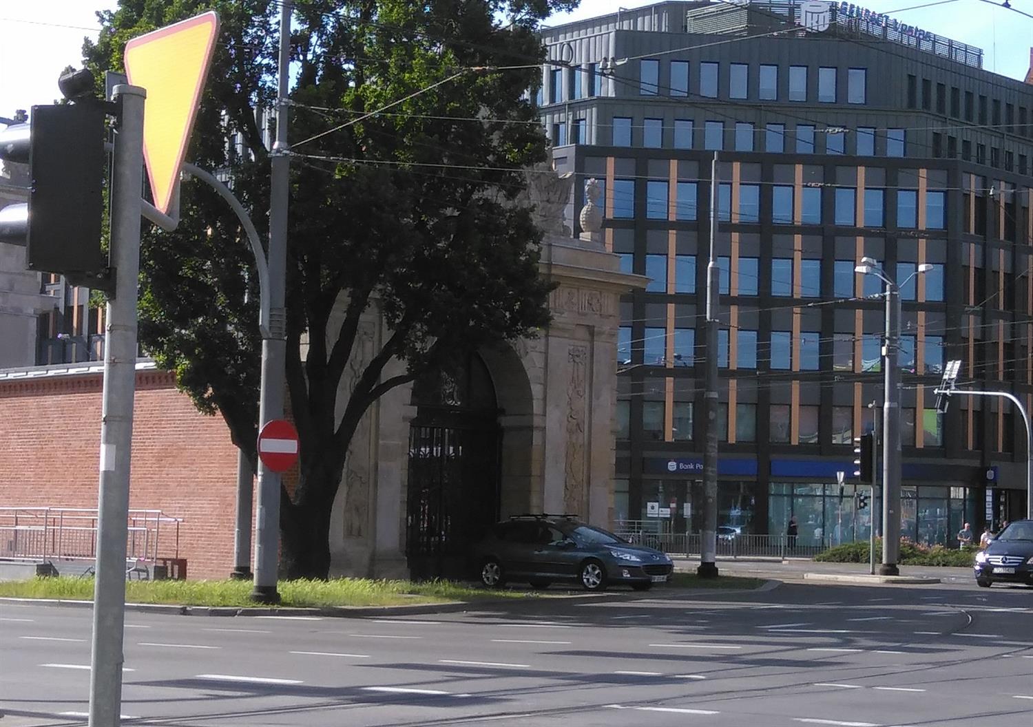 Brama Portowa to newralgiczny punkt na drogowej mapie Szczecina - o największym natężeniu ruchu. Właśnie z tego powodu jest pod kontrolą miejskiego sytemu monitoringu. Dlatego w tak szczególnym miejscu parkowanie w bramie - jak widać na zdjęciu - nabiera zupełnie innego wymiaru. Jakiego?