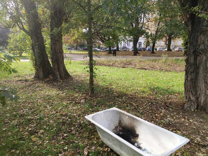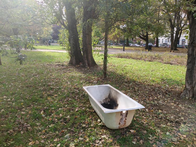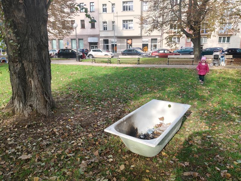 W parku można się zapomnieć. Nawet teraz, bo ciepła aura wciąż sprzyja. Jednak chyba nie aż do tego stopnia, żeby w „pięknych okolicznościach przyrody"... zgubić wannę. A jednak, właśnie taki typowo łazienkowy element pojawił się w parku Andersa. Ktoś wrzucił do niego śmieci, podpalił. Póki co, nikt się po wannę nie zgłosił. Nawet służby odpowiedziane za utrzymanie parku, jakby nie dostrzegły „zguby". ©℗