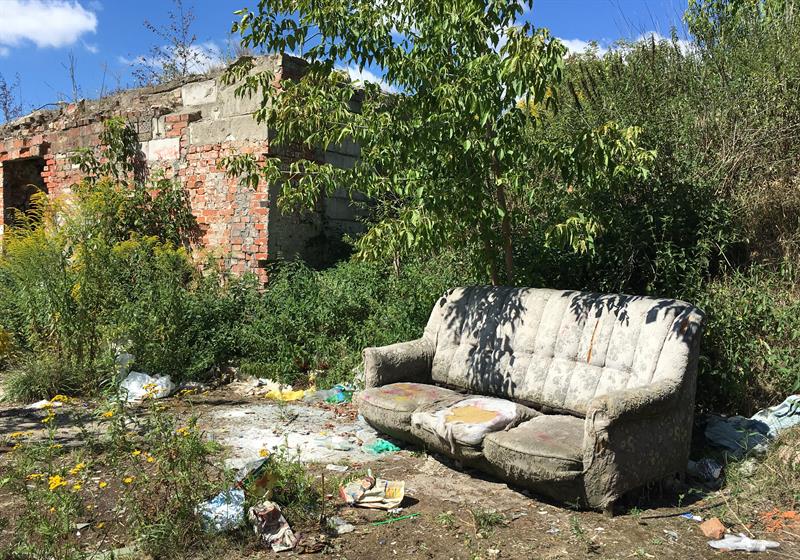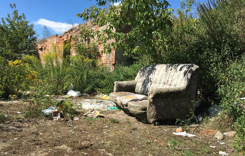 To też Szczecin. Mniej wytworny. Na taki właśnie kącik wypoczynkowy wśród śmieci i gruzu można natknąć się na terenie dawnego folwarku Sienno u zbiegu ulic Łącznej i Przepiórki. Skryty za resztami rozpadającego się muru i wśród zarośli z widokiem w dodatku na... zabytek. Bo na znajdujący się na skraju osiedla współczesnej wielorodzinnej zabudowy Małe Błonia dawny dwór, który od lat jest zabitym na głucho pustostanem w swym obecnym stanie zniszczenia niejako "współgra" z tymże pobliskim pejzażem. ©℗