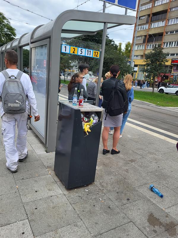 Taka szczecińska kultura. Normalny człowiek widząc przepełniony pojemnik, nie dokłada tam śmieci, nie rzuca obok. Ile śmieci "produkujemy" na ulicy? Naprawdę nie można ich ze sobą zabrać? Jednej butelki? Skórki od banana? Opakowania po napoju?