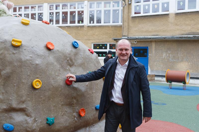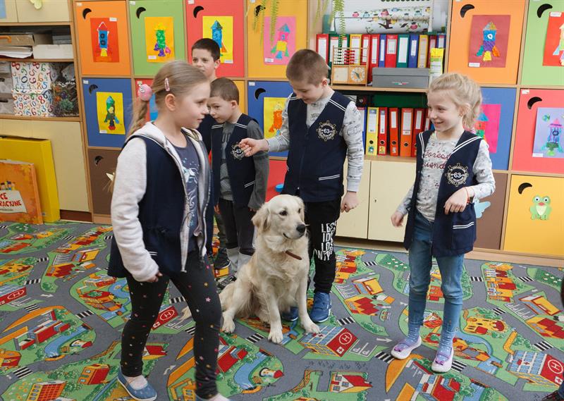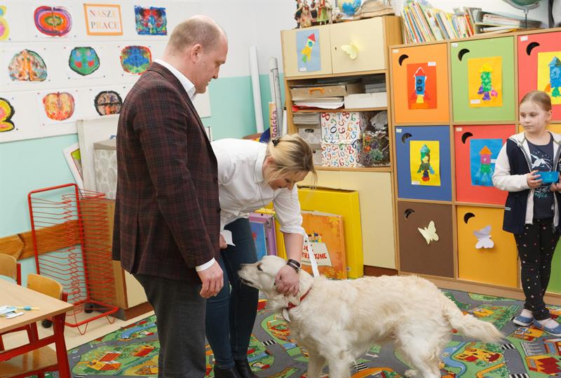 Oprócz nowego placu zabaw, prezydent zwiedził także kilka innych miejsc, m.in. salę do dogoterapii. Zajęcia z psem mają w niej uczniowie, zgodnie ze wskazaniami terapeuty. Dzieci zadawały prezydentowi pytania do czego służą różne psie akcesoria, jednak prezydent był znakomicie zorientowany, gdyż jak się okazało też ma psa w dodatku tej samej rasy - golden retriever. Uczestnicząca w zajęciach suczka Luna chętnie podała prezydentowi łapę. Podczas lekcji języka niemieckiego Piotr Krzystek rozmawiał z uczniami o egzaminach językowych, a na języku polskim o nowych lekturach i egzaminie ósmoklasisty, odwiedził także uczniów na lekcji matematyki i wuefu. Dyrektor SP63 podkreśliła, że mimo trudnych warunków na sali gimnastycznej, uczniowie zdobywają złote i srebrne medale w zawodach lekkoatletycznych. W ubiegłym roku szkolnym szczeciński Urząd Miasta na remonty i modernizacje placówek oświatowych wydał 200 mln zł. ©℗