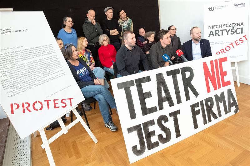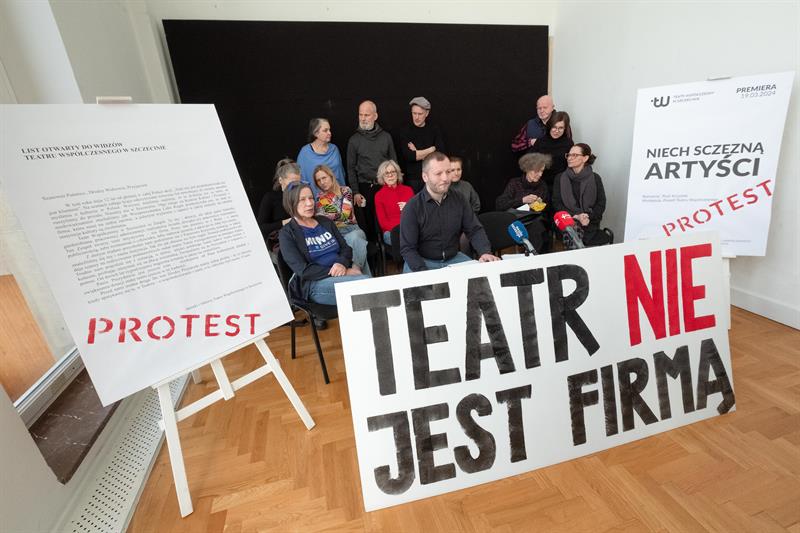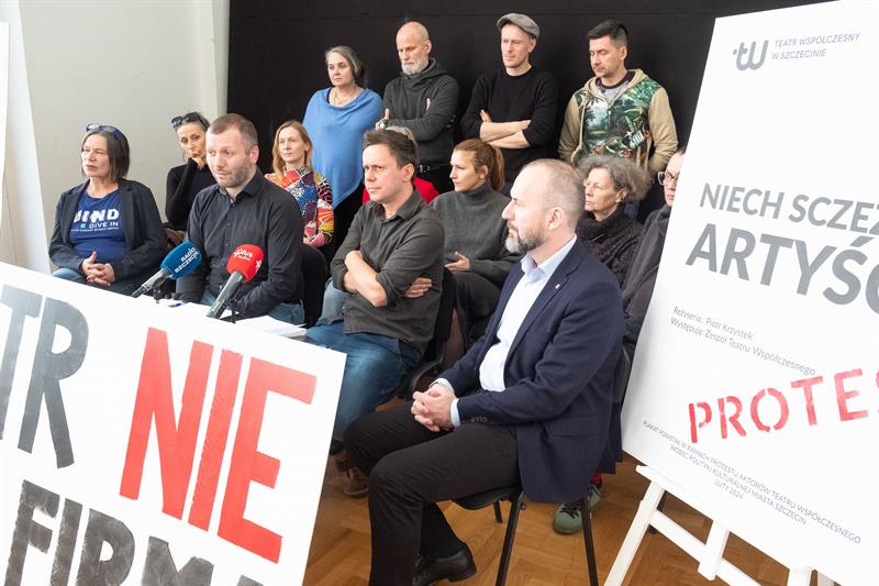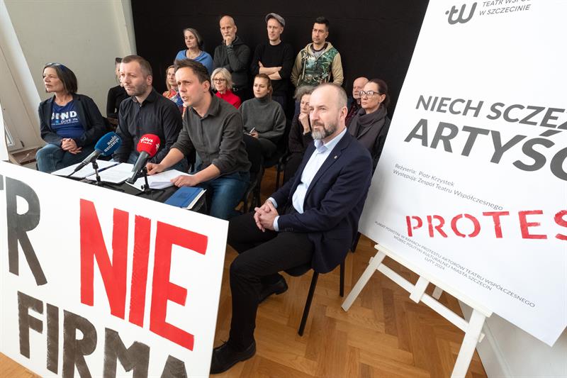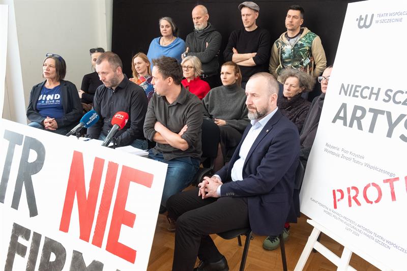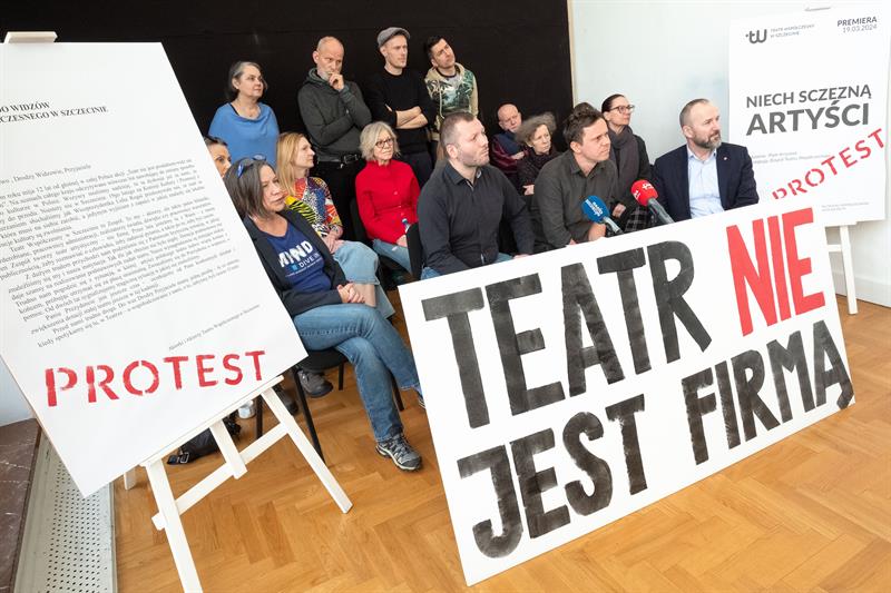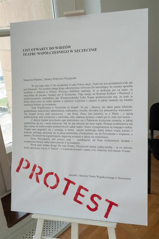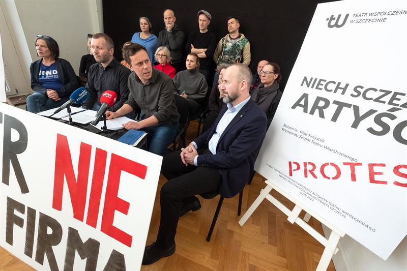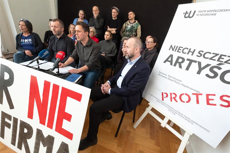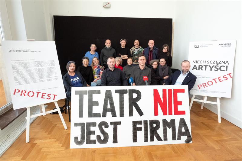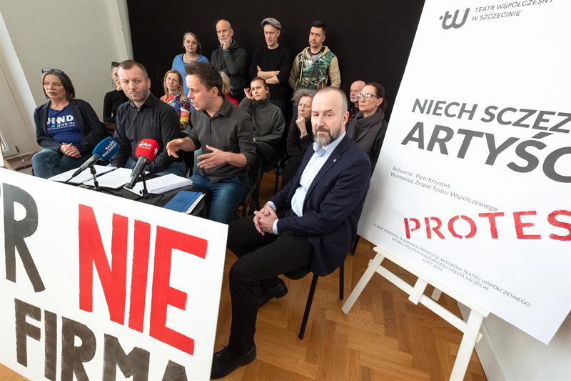 Artyści spotkali się w poniedziałek z dziennikarzami, pokazując im baner z napisem „Teatr nie jest firmą”. To nawiązanie do sformułowania Lidii Rogaś, zastępcy prezydenta Szczecina, która podczas głośnego spotkania z ludźmi kultury sprzed tygodnia miała porównać teatr do przedsiębiorstwa. Aktorów to zestawienie rozwścieczyło. Przypomnieli o osiągnięciach Teatru Współczesnego na niwie artystycznej, o tym, że znalazł się w pierwszej trójce instytucji kulturalnych w Polsce, jeśli chodzi o obecność na festiwalach, o ubiegłorocznym Paszporcie „Polityki” dla dyrektora artystycznego Jakuba Skrzywanka.