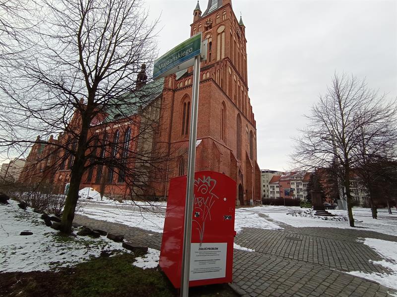 - U zbiegu ul. Grodzkiej i ul. Staromiejskiej postawiono czerwony pojemnik przeznaczony do zbiórki odzieży. Stoi w pasie zieleni i na terenie znajdującym się pod ochroną konserwatorską. W związku z powyższym proszę o odpowiedź, czy został postawiony za zgodą konserwatora zabytków?