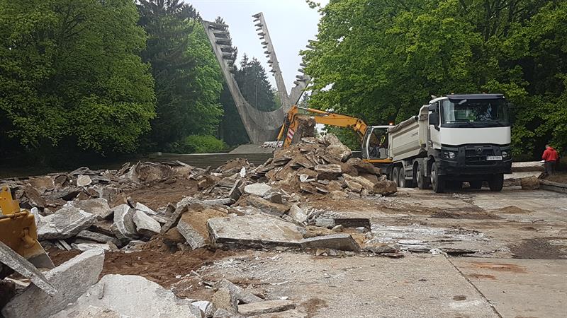 Schody zostały już rozebrane, trwa teraz zrywanie nawierzchni placu. Po uprzątnięciu terenu wykonawca przygotuje go na nowo, zrobi także odwodnienie. Oprócz placu wyremontowany będzie też fragment chodnika biegnącego wzdłuż alei Okólnej, zostanie także odświeżony pomnik Braterstwa Broni. Koszt prac to 1 096 600,00 złotych.