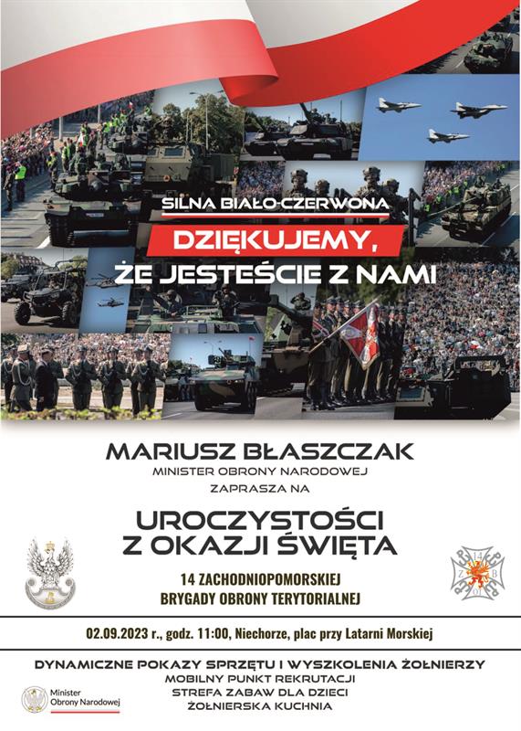 Po zakończeniu oficjalnej uroczystości przez plac przejdzie defilada wojskowa z pododdziałami 14 ZBOT i sprzętem, którym dysponują żołnierze. Po niej rozpocznie się piknik wojskowy. Przy latarni morskiej w Niechorzu występować będzie orkiestra wojskowa, swój sprzęt wystawi 14 Zachodniopomorska Brygada Obrony Terytorialnej a także inne jednostki wojskowe, które stacjonują na terenie województwa zachodniopomorskiego: 12 Brygada Zmechanizowana, 8 Flotylla Obrony Wybrzeża, 12 baza bezzałogowych statków powietrznych, straż graniczna, policja i straż pożarna. Obejrzeć będzie można m.in. pojazd typu MRAP, roboty saperskie, bezpilotowiec „Orbiter”. W tym czasie wojsko częstować będzie wszystkich z kuchni polowej żołnierską grochówką.
