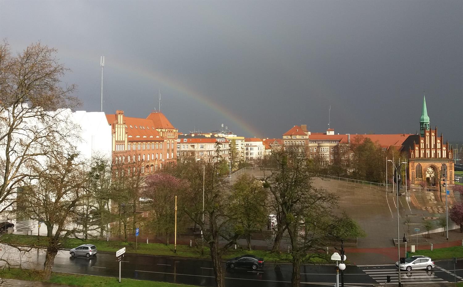 Aura zaś płata figle: po ulewnym deszczu raczy nas przepiękną tęczą.