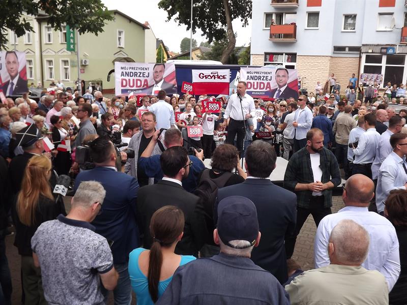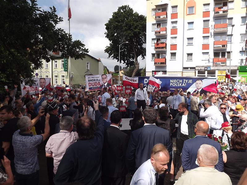 W Łobzie spotkania prezydenta nikt nie zakłócał. W pewnym oddaleniu od miejsca spotkania dało się zauważyć mało liczebną grupę zwolenników Rafała Trzaskowskiego, przybyłą z transparentami.