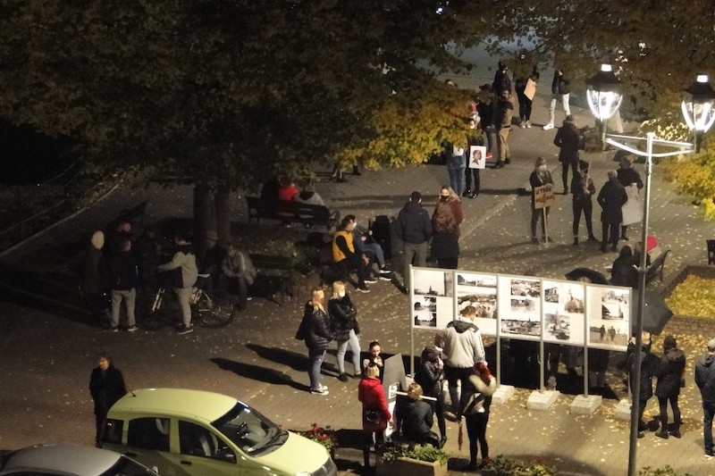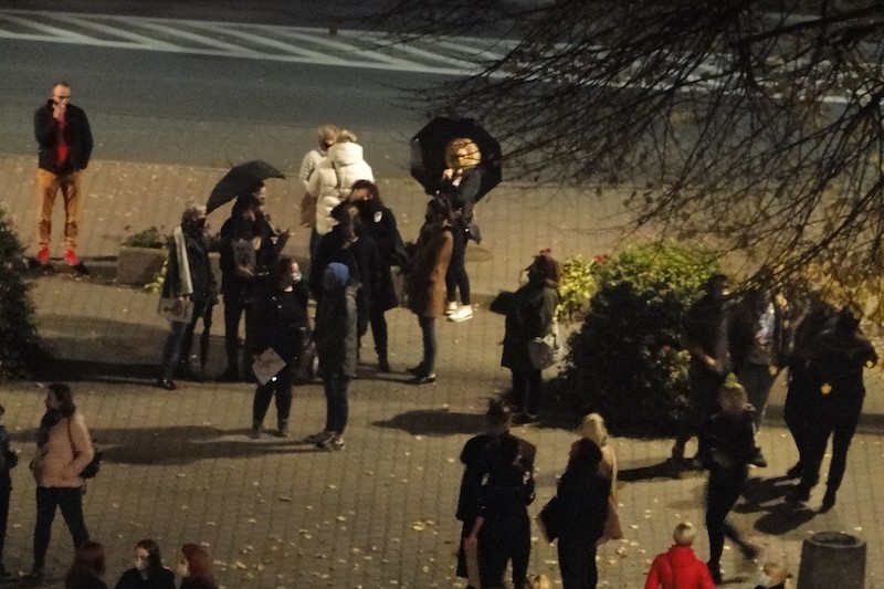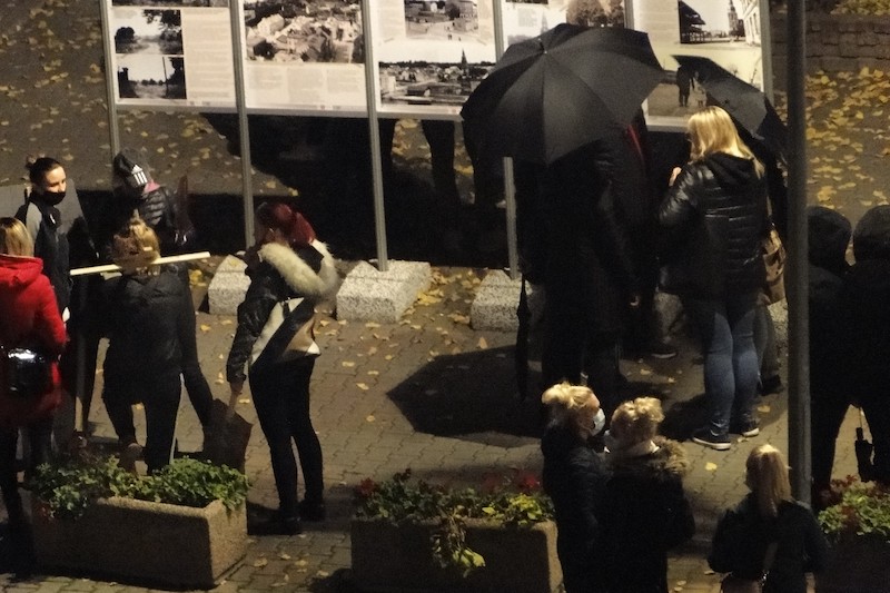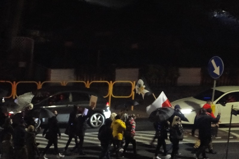 W poniedziałek (26 października), kolejny już „spacer” w Gryfinie rozpoczął się o g. 18.30. Krótko przed godziną wymarszu na placu Barnima gromadziło się coraz więcej mieszkańców miasta; kobiet i mężczyzn, starszych i młodszych. Pieszym towarzyszyli zmotoryzowani. Przy dźwiękach klaksonów kilkaset osób przeszło ulicami miasta, skandując hasła wyrażające złość i gniew przeciwko niedawnemu wyrokowi Trybunału Konstytucyjnego zaostrzającemu prawo antyaborcyjne.