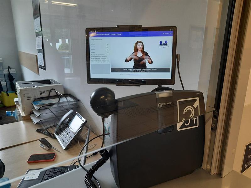 – Na naszej stronie internetowej (policki.pl) mamy zakładkę „tjm” z odpowiednim oznakowaniem, zrozumiałym dla osób niesłyszących – tłumaczy Daniel Kiełczewski, koordynator ds. dostępności w powiecie polickim. – Osoba, która siedzi w domu i korzysta z naszej strony internetowej, klika w przycisk, automatycznie otwiera jej się okno z tłumaczem i zaczyna z nim rozmawiać. Tłumacz dostępny online dzwoni do naszego urzędu, gdzie albo umawia wizytę, albo dopytuje o sprawy, które interesują petenta. Ta usługa dostępna jest też na miejscu, w urzędzie: gdy osoba przychodzi z ulicy i urzędnik widzi, że jest osobą migającą, to klika w przycisk i automatycznie, na wystawionym w widocznym miejscu tablecie, pojawia się tłumacz.