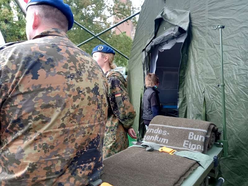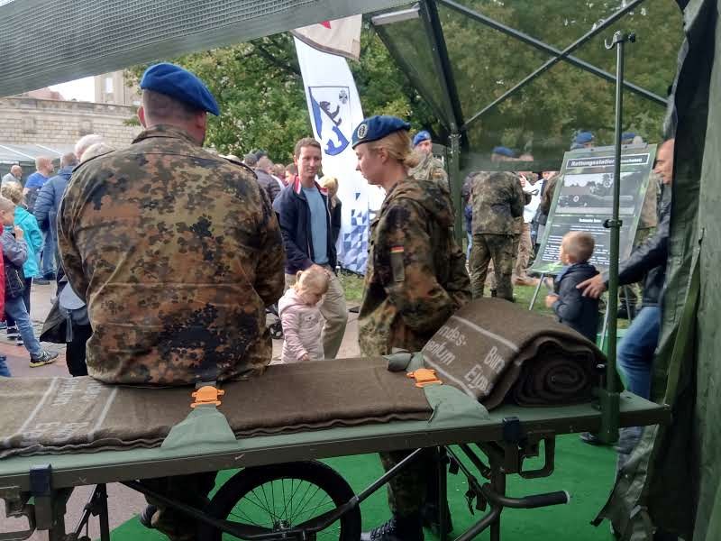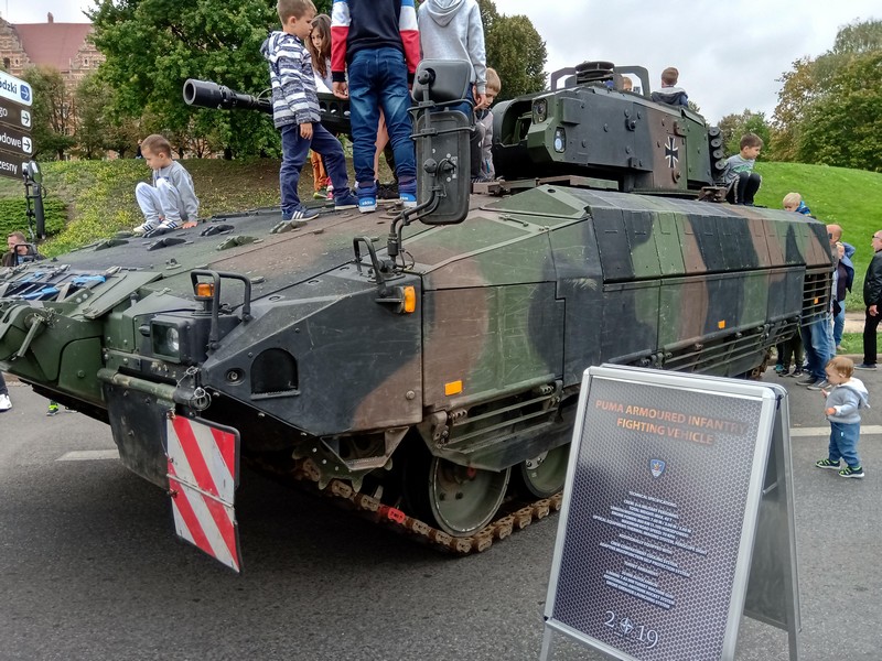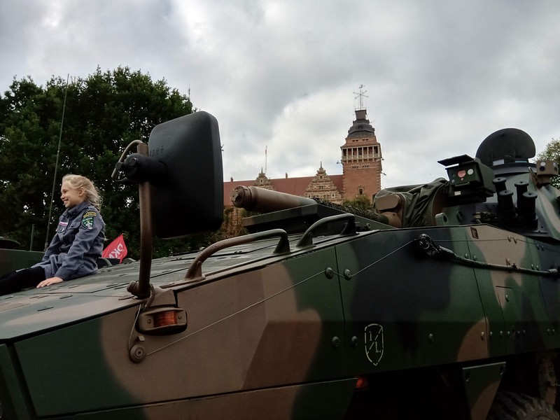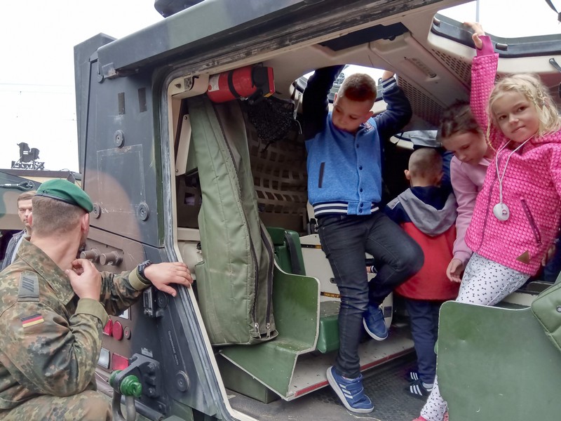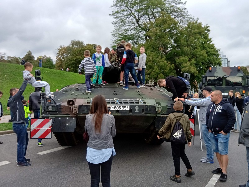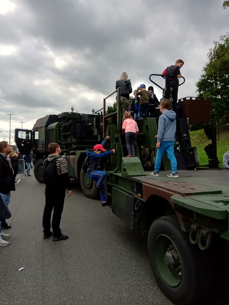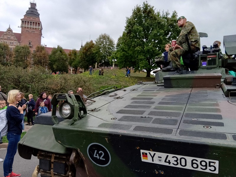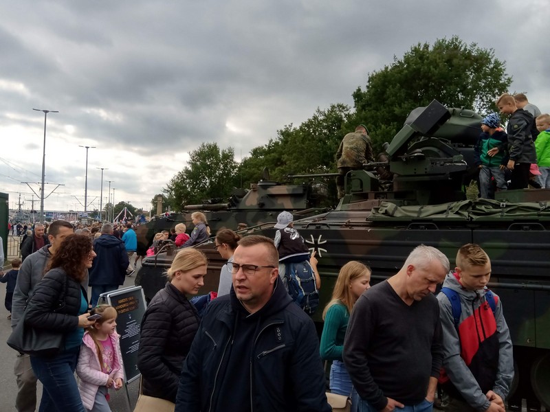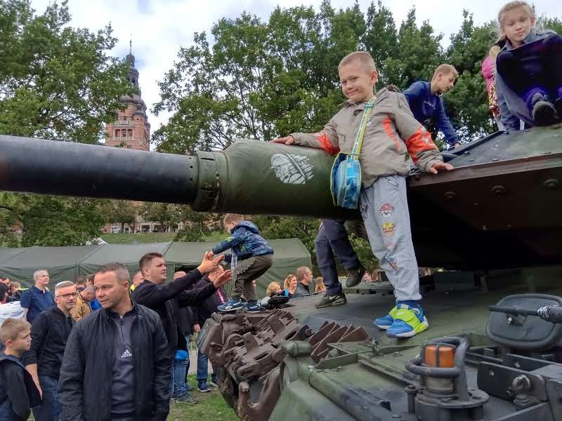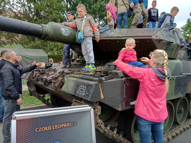 Starsi i młodsi oglądają wystawione tam czołgi Leopard, bojowe wozy piechoty, Rosomaka i Boxera, czyli kołowe transportery opancerzone, samobieżne armatohaubice, moździerze i wyrzutnie rakietowe. Jest też szpital polowy.