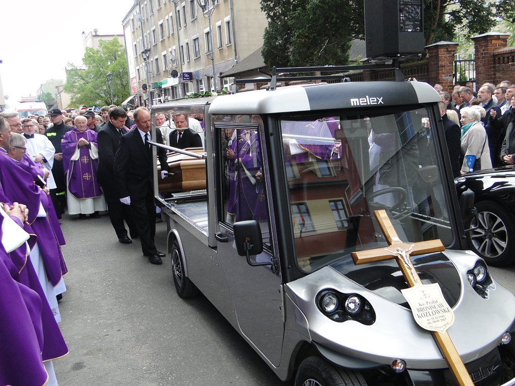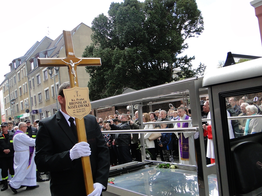 Uroczystości pogrzebowe rozpoczęły się w czwartek modlitewnym czuwaniem przy trumnie oraz pierwszą mszą św. pogrzebową. Dzisiejszą ceremonię zapoczątkowała jutrznia za zmarłego kapłana. Mszy św. pogrzebowej przewodniczył ks. abp Andrzej Dzięga. Świątynia, w której przez czterdzieści pięć lat ks. prałat Kozłowski służył swoim wiernym, nie pomieściła wszystkich, którzy przyszli pożegnać się ze zmarłym duchownym. Wzruszające słowa ostatniego pożegnania przekazała rodzina, władze kościelne i świeckie, parafianie. Niezwykle przejmująco wybrzmiał testament zmarłego i pełne miłości słowa skierowane do parafian, ale też i do osób niewierzących, których wielu było i jest dumnych ze swojej przyjaźni ze zmarłym księdzem. Po mszy św. kondukt żałobny przeszedł ulicami miasta na gryfiński cmentarz, gdzie ks. prałat Bronisław Kozłowski – zgodnie z ostatnią wolą – został pochowany.