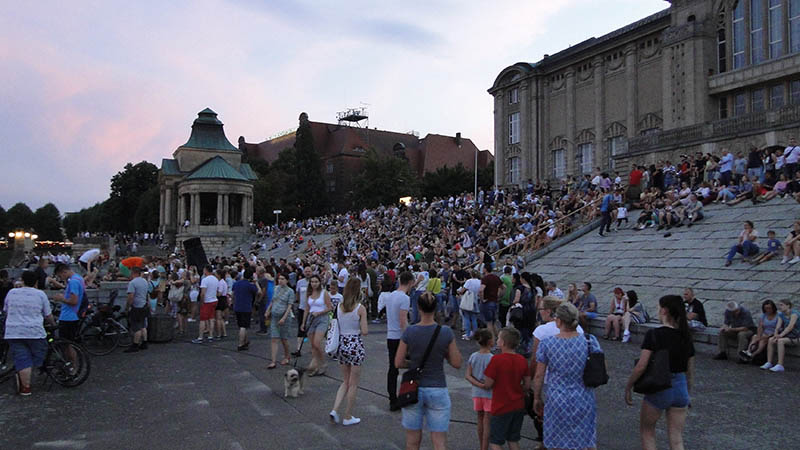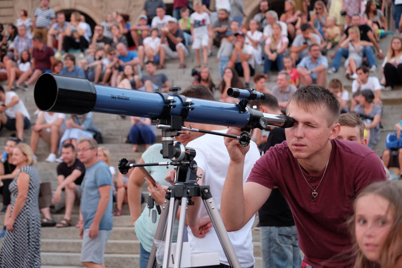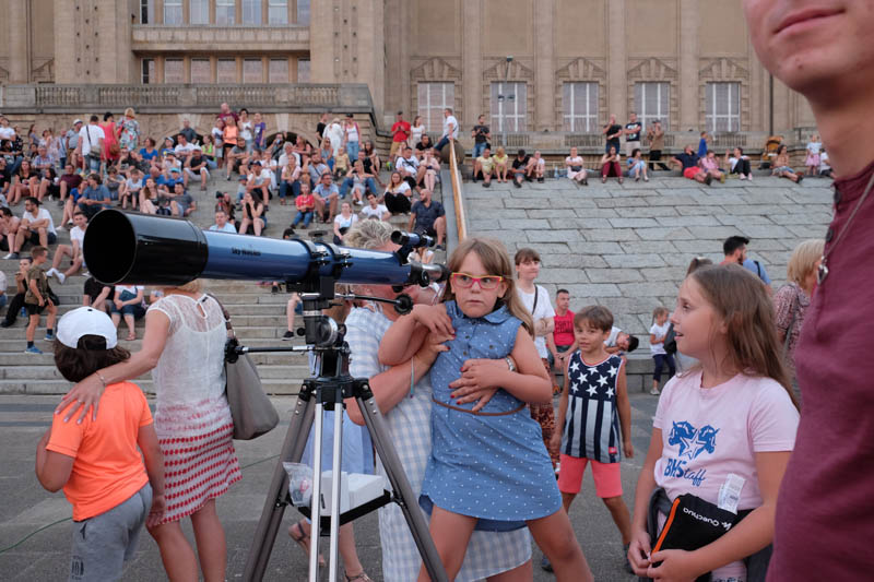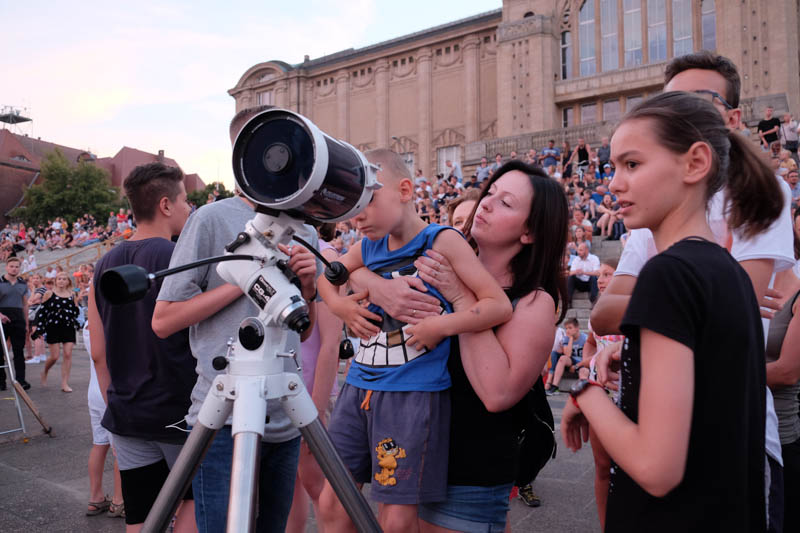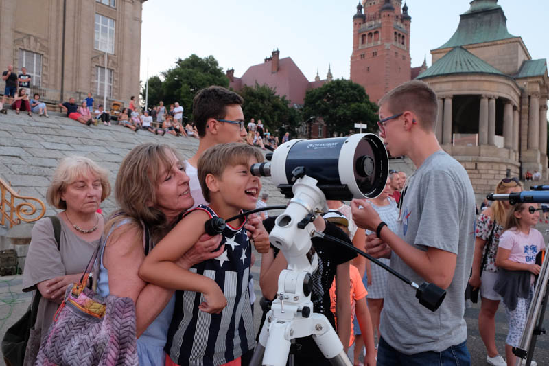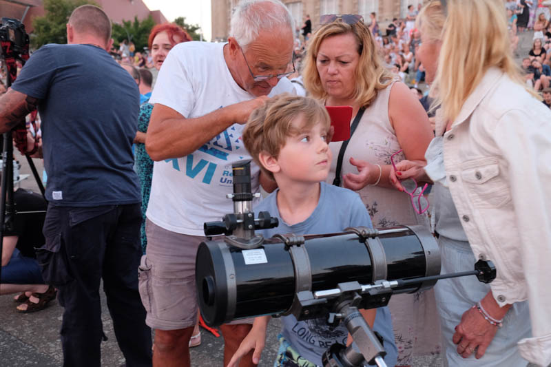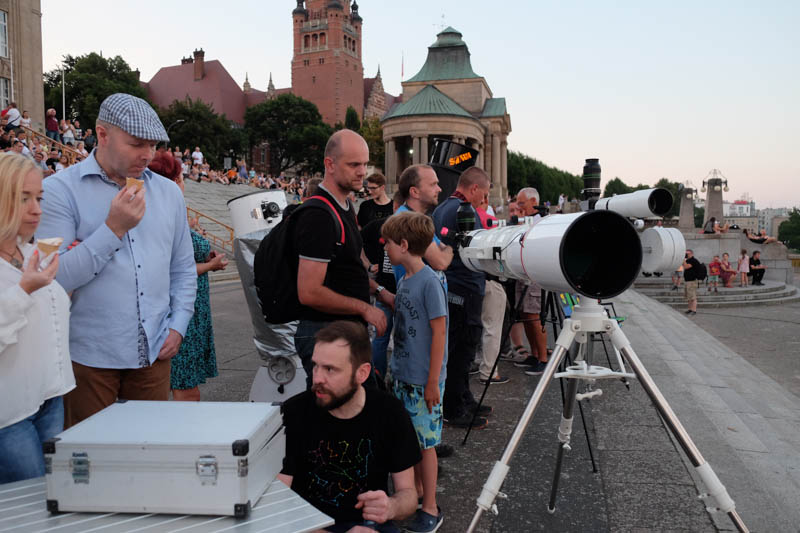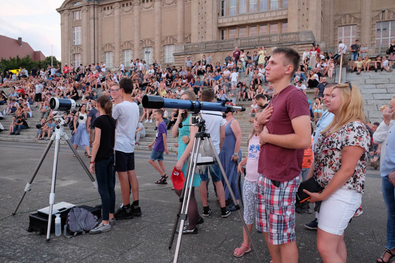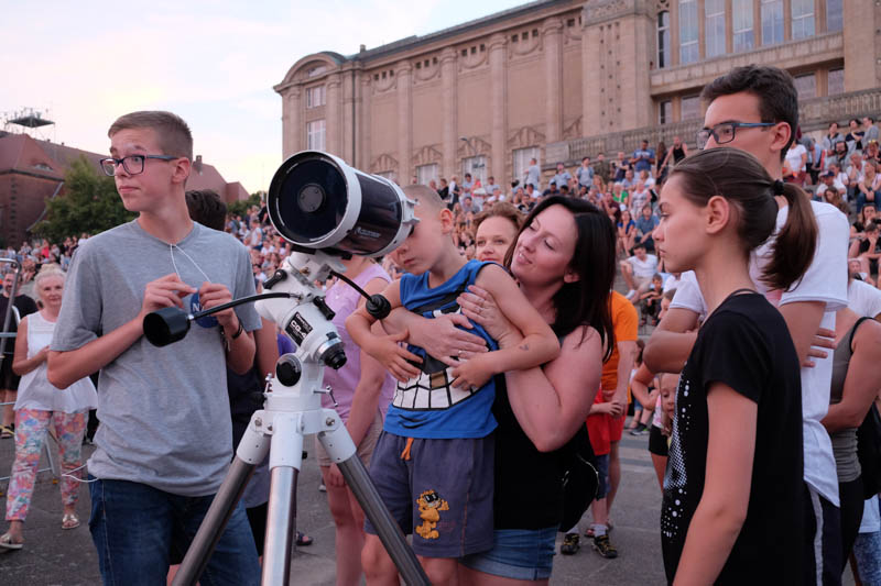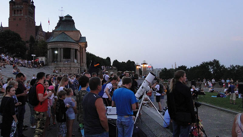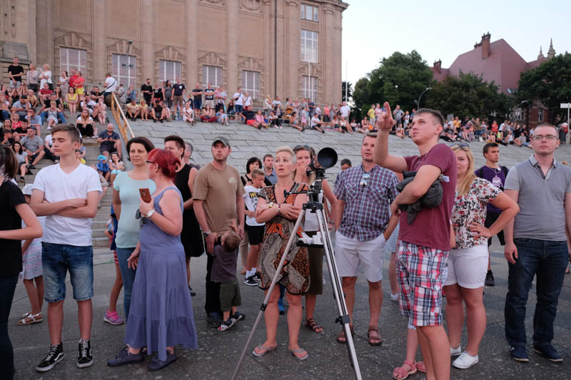 Sporo ludzi zebrało się w piątek (27 lipca) wieczorem na Wałach Chrobrego w Szczecinie by wspólnie z Towarzystwem Miłośników Astronomii oglądać niezwykłe widowisko na wieczornym niebie - najdłuższe w tym stuleciu całkowite zaćmienie Księżyca. Niestety pogoda popsuła szyki.