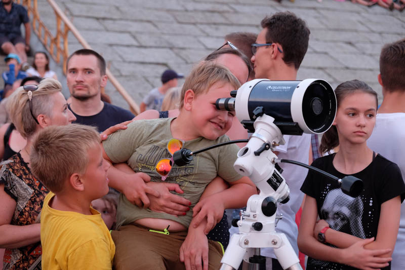 Mimo panujących upałów i pięknego, bezchmurnego nieba za dnia, smakiem musieli się obejść wszyscy ci, którzy liczyli na równie sprzyjającą pogodę wieczorem. Gęste chmury na horyzoncie przesłoniły całe zjawisko. Nie było widać nawet rąbka naszego satelity. W zebranym tłumie nie brak było głosów zawodu. Nawet najwięksi optymiści mieli markotne miny. - Księżyc zjadła trema, przestraszył się widowni - to tylko jeden z wielu zawiedzionych głosów podsumowujących całe wydarzenie. Mimo wszystko humory dopisywały, a wiele osób postanowiło czekać, aż naturalny satelita ziemi w końcu wyłoni się zza chmur.