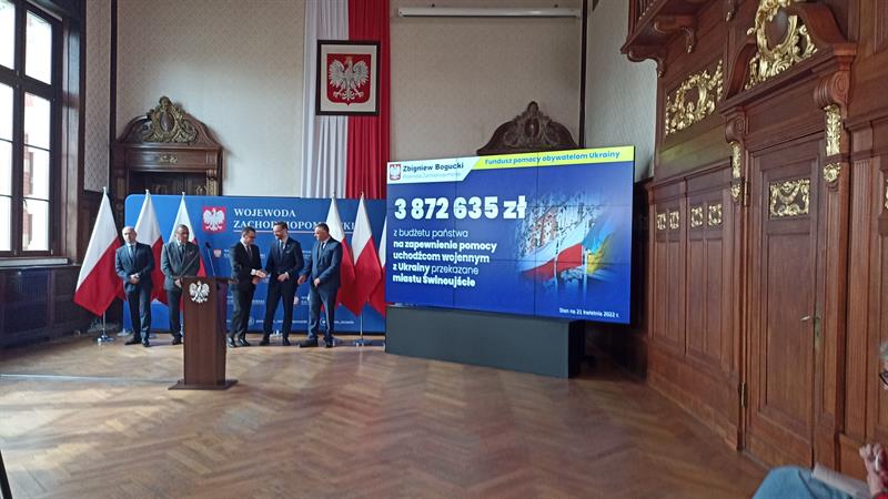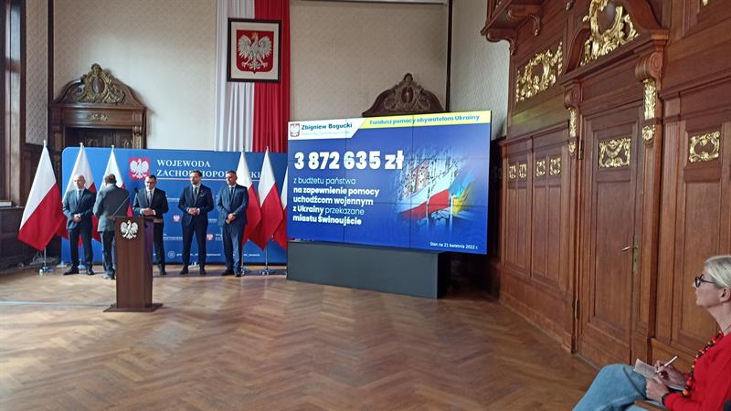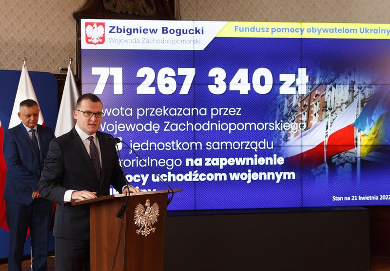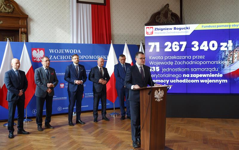 Zachodniopomorskie samorządy przodują we współpracy z rządem, a pomoc uchodźcom wojennym z Ukrainy w naszym regionie przebiega znacznie sprawniej, niż w innych częściach kraju. To pierwsze wnioski ze spotkania Pełnomocnika Rządu ds. uchodźców wojennych z Ukrainy, wiceministra spraw wewnętrznych i administracji Pawła Szefernakera oraz wojewody zachodniopomorskiego Zbigniewa Boguckiego z prezydentami miast z województwa zachodniopomorskiego na temat współpracy.