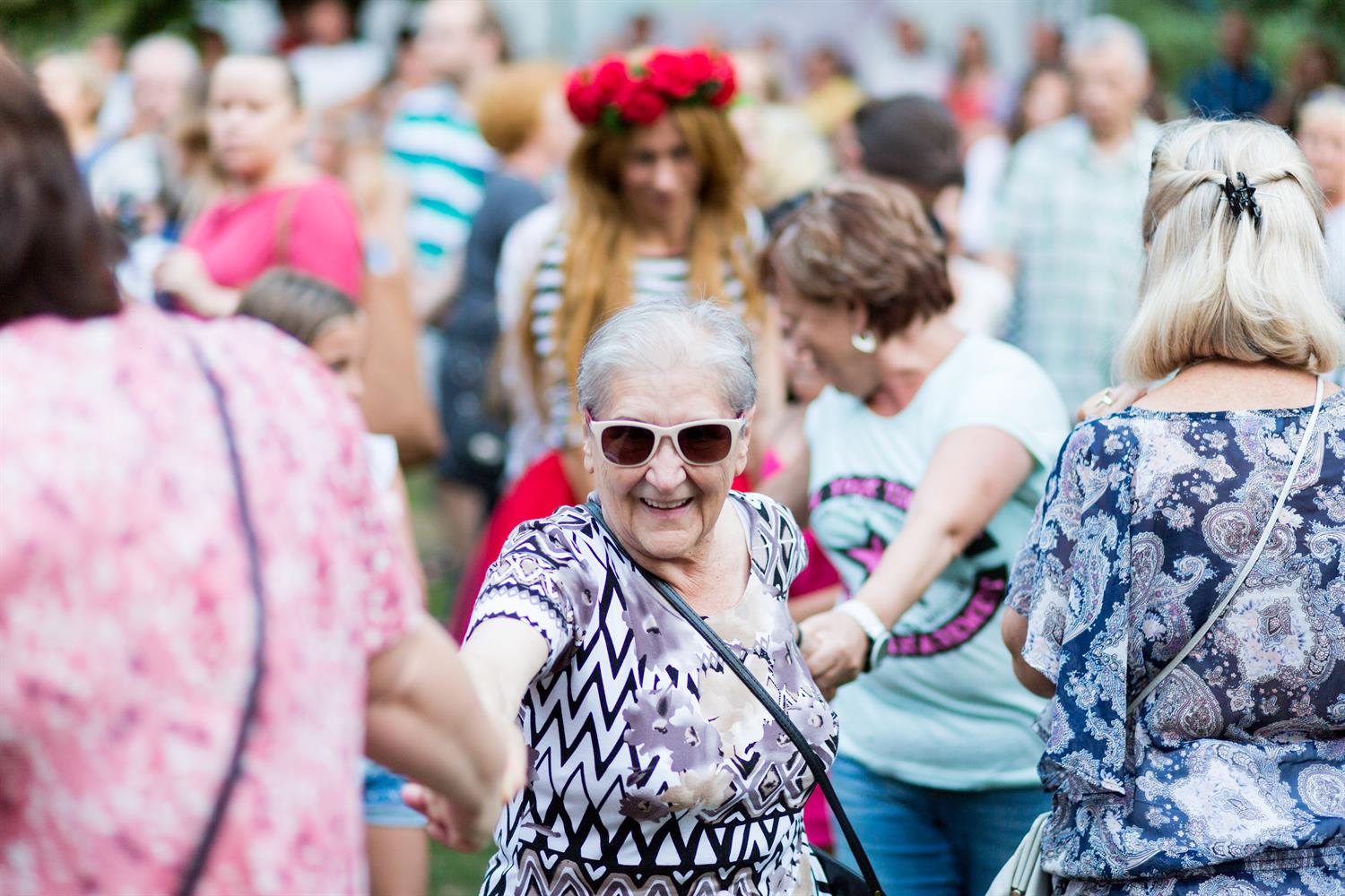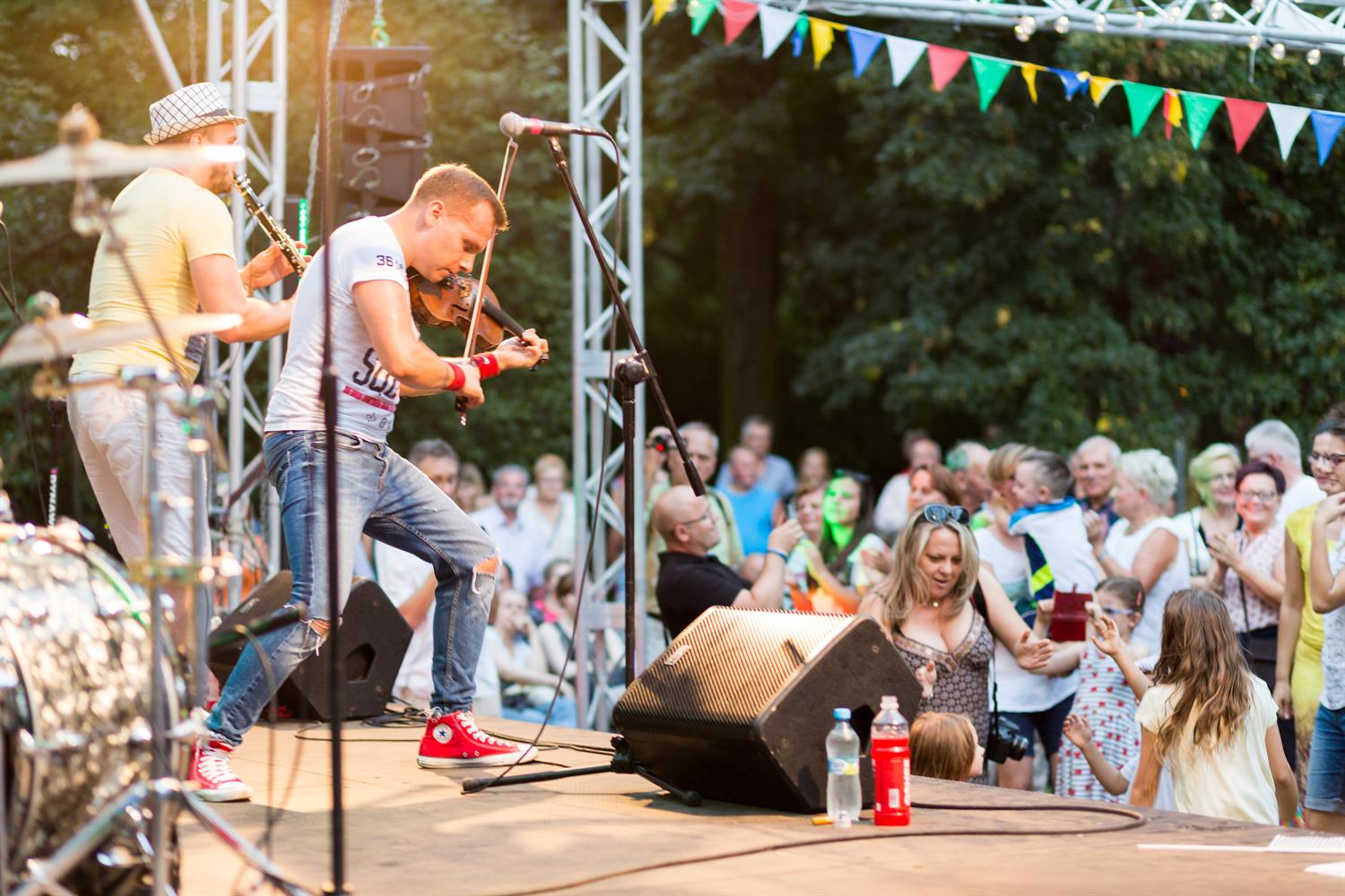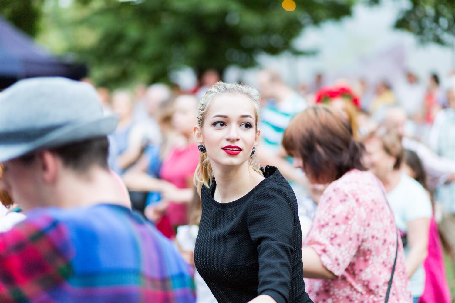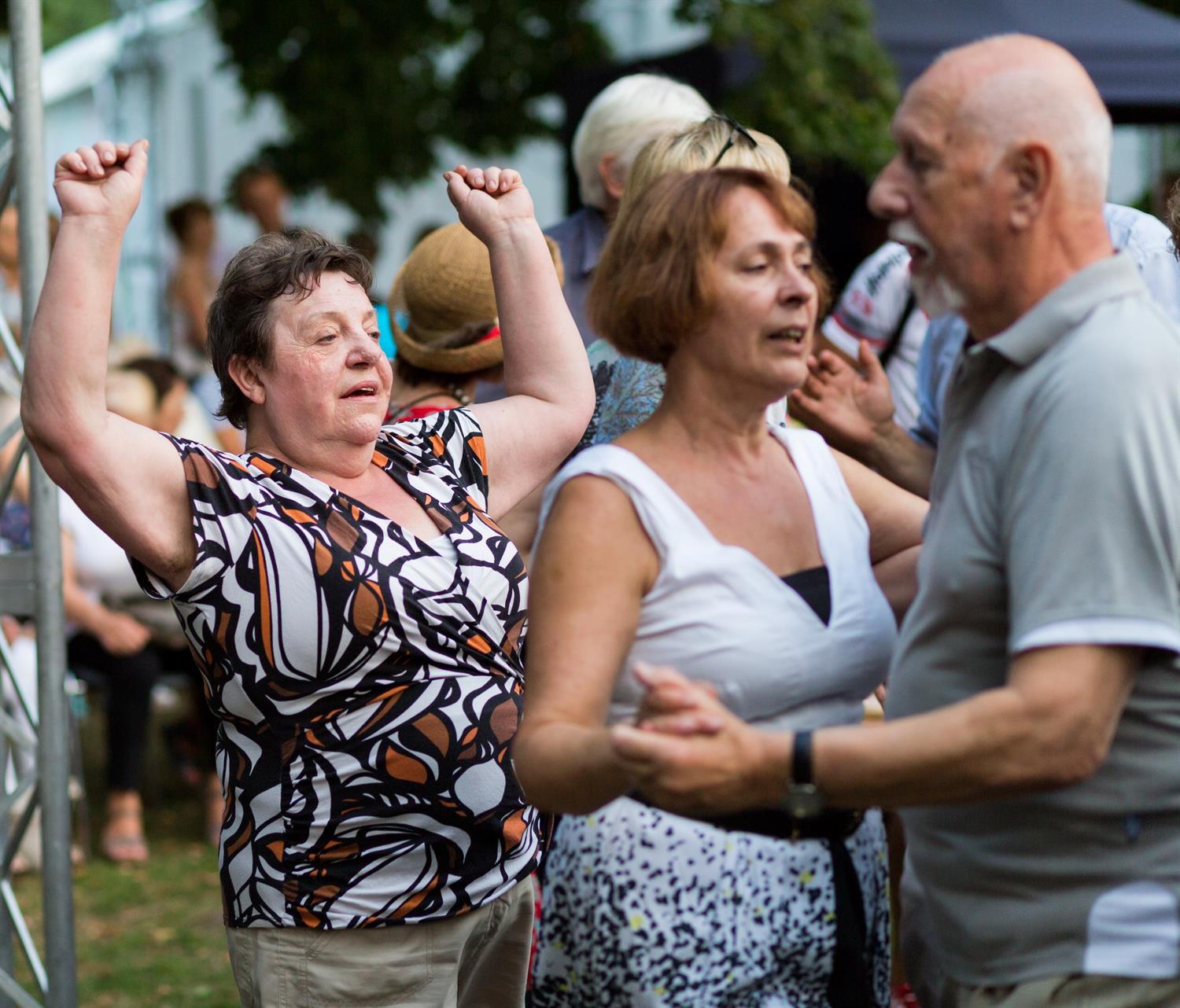 Jak widać rytmy porwały wszelkie kategorie wiekowe. Bo przygrywał zespół Klezmafour "folkowy wehikuł na turbodoładowaniu, którym chłopaki przemierzają muzyczny świat od Polski, poprzez Rumunię, Bułgarię., Turcję, Syrię". Tak przynajmniej została ta kapela zareklamowana. I jak widać na zdjęciu, nie bez podstaw. Nic więc dziwnego, że wedle temperamentu i możliwości, jedni z entuzjazmem zatańczyli w korowodzie, inni w parach.